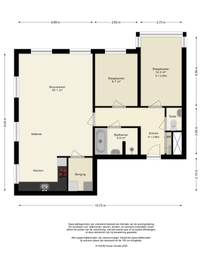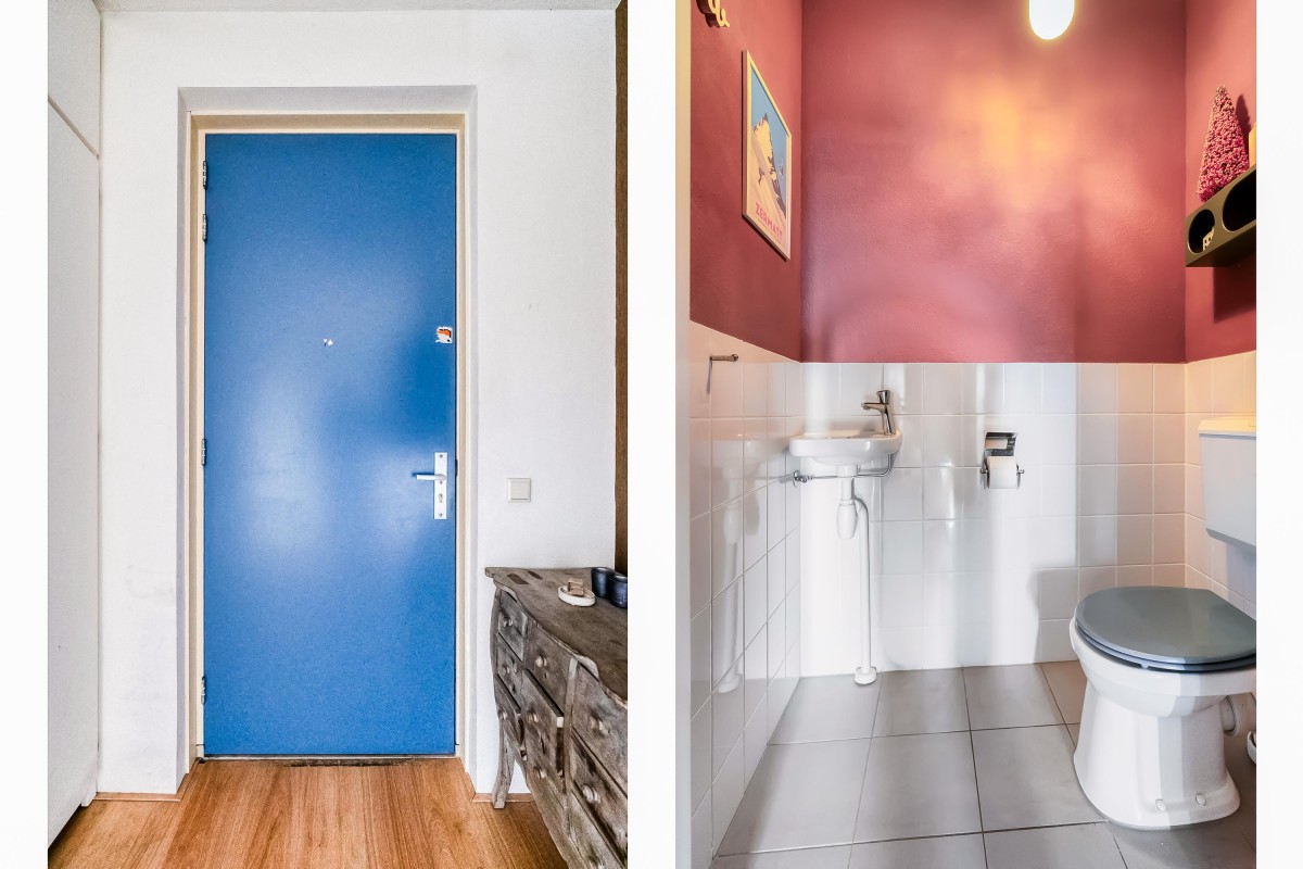 De hal biedt toegang tot alle vertrekken: een separaat toilet, de badkamer, twee slaapkamers en de ruime woonkamer met open keuken en berging met opstelplaats voor witgoed.