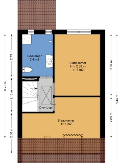 In totaal zijn er twee slaapkamers, waarvan zich zowel aan de voor- als achterzijde een slaapkamer bevindt.