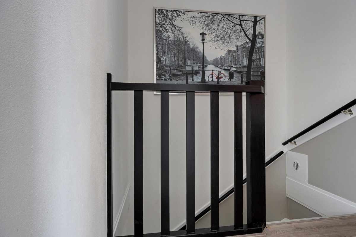 De vloer van de eerste verdieping is voorzien van laminaat.
