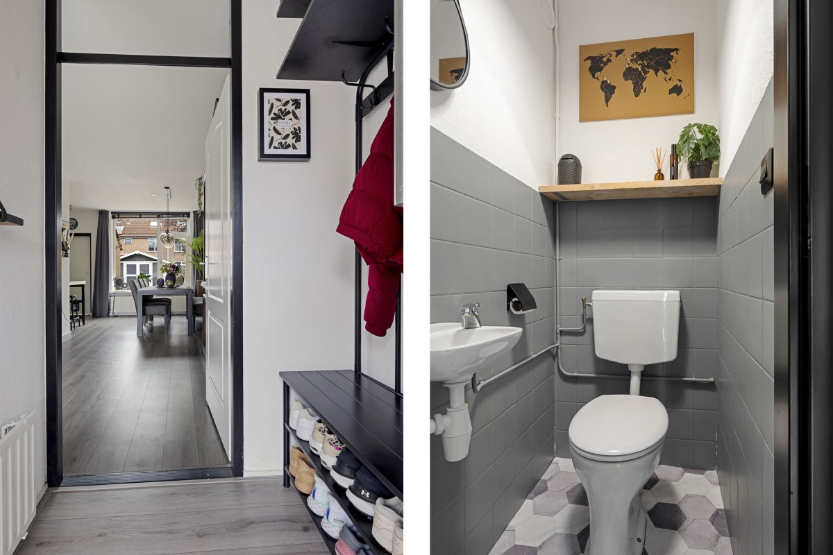 Hal met toegang tot de meterkast voorzien van glasvezelaansluiting en deur naar de woonkamer.