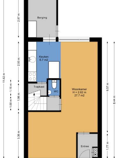 Vanuit de keuken loop je door naar de berging aan de achterzijde van het huis. Deze ruimte leent zich perfect om te gebruiken als bijkeuken.