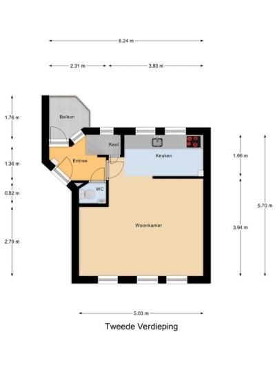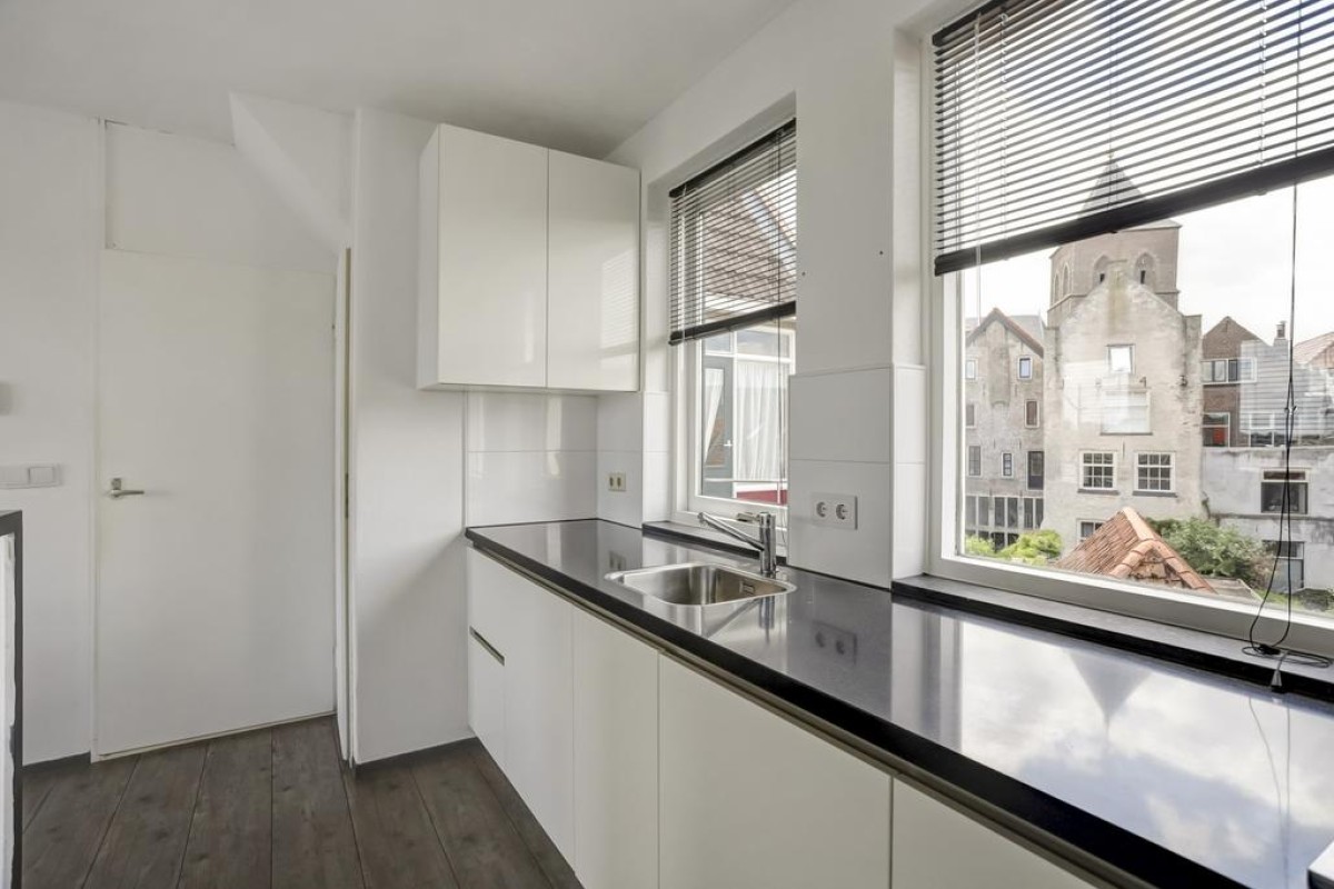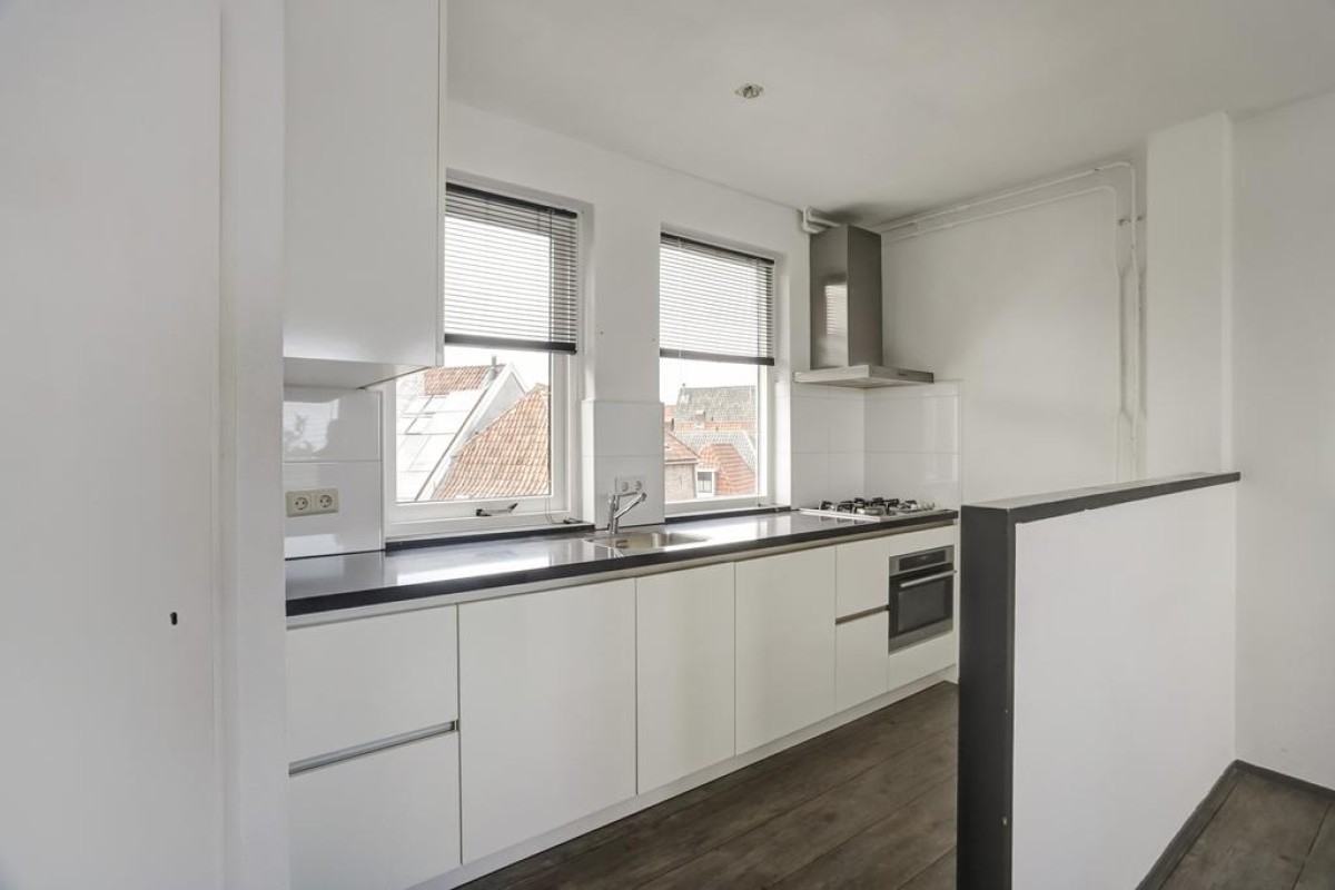 Lees verderDe keuken is uitgevoerd in een rechte opstelling en voorzien van een een granieten werkblad en een ingebouwde koelkast, 4-pits gaskookplaat, vaatwasser, oven en een rvs afzuigschouw. Vanuit de woonkamer heeft men toegang tot het balkon gelegen op het zuid-westen, welke fraai uitzicht biedt op het prachtige “Keizerskwartier”.