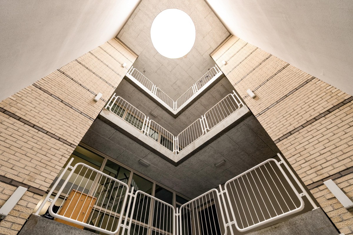 Centrale entree met bellentableau, brievenbussen en trap opgang naar de verdieping, helaas is er geen lift aanwezig