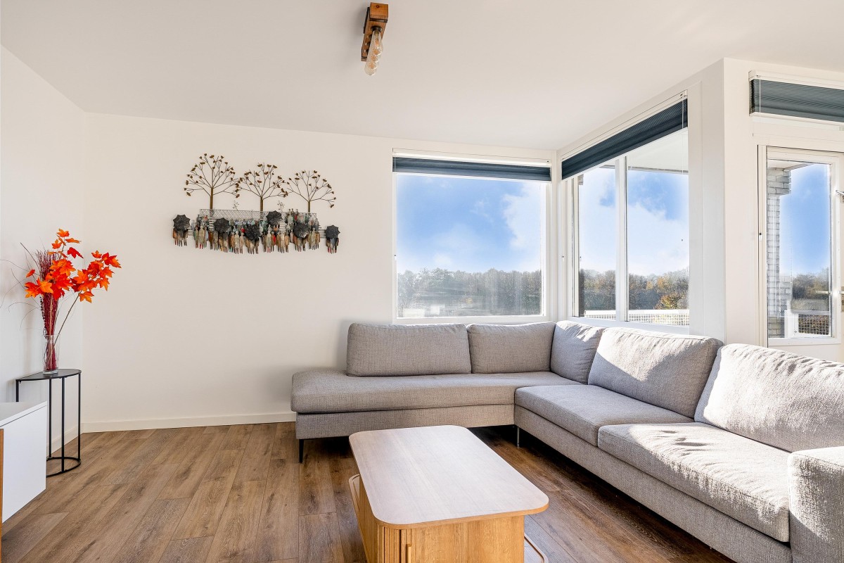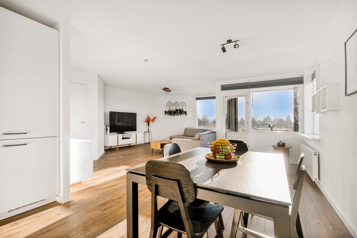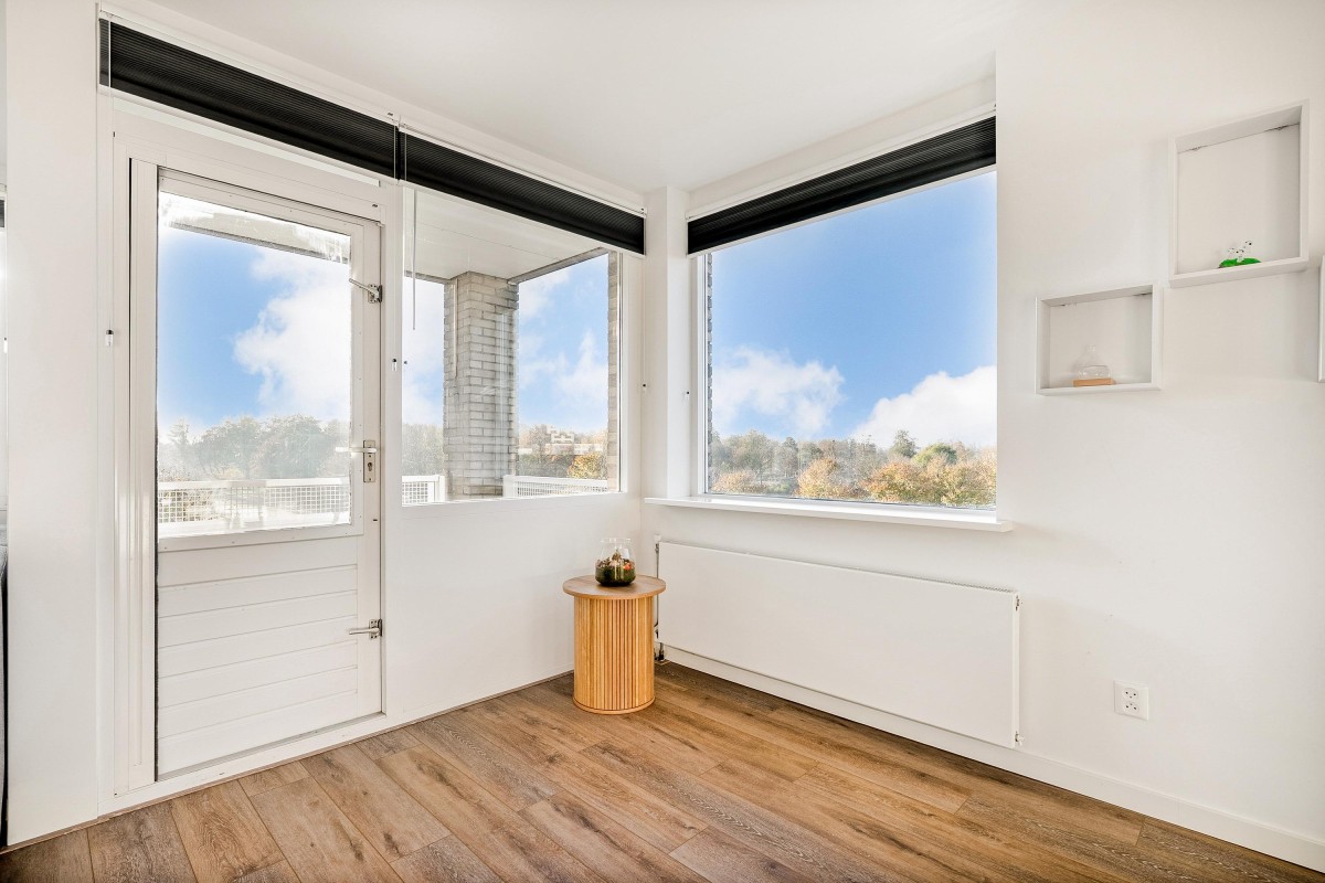 Entree/hal met wasruimte separate toiletruimte (2011) en toegang tot twee slapkamer en de ruime licht woonkamer. De lichte woonkamer, aan de achterzijde van de woning, heeft grote raampartijen die zorgen voor een prachtige lichtinval en een open zicht over het gemeentelijk groen. Het balkon is gelegen op het zuiden. De half open keuken is in 2022 vernieuwd en voorzien van lichten fronten, composiet werkblad, oven, combi magnetron, inductie kookplaat, afzuigkap en koel-/vriescombinatie. Verder heeft de keuken voldoende bergruimte in onder en bovenkasten, lades en apothekerskast. De woning beschikt over twee slaapkamers, ieder met een eigen formaat (10m2 en 23 m2). De grootste slaapkamer is eventueel nog op te splitsen in twee afzonderlijke kamers. De in 2022 gerenoveerd badkamer is voorzien van vloerverwarming, ruime inloop douche, wastafel met meubel, handdoekenkast en verlichte spiegel.