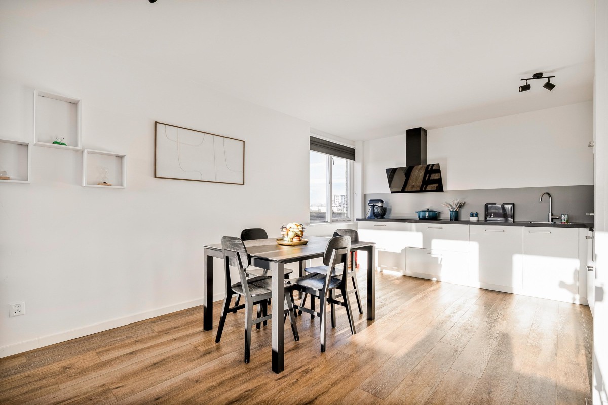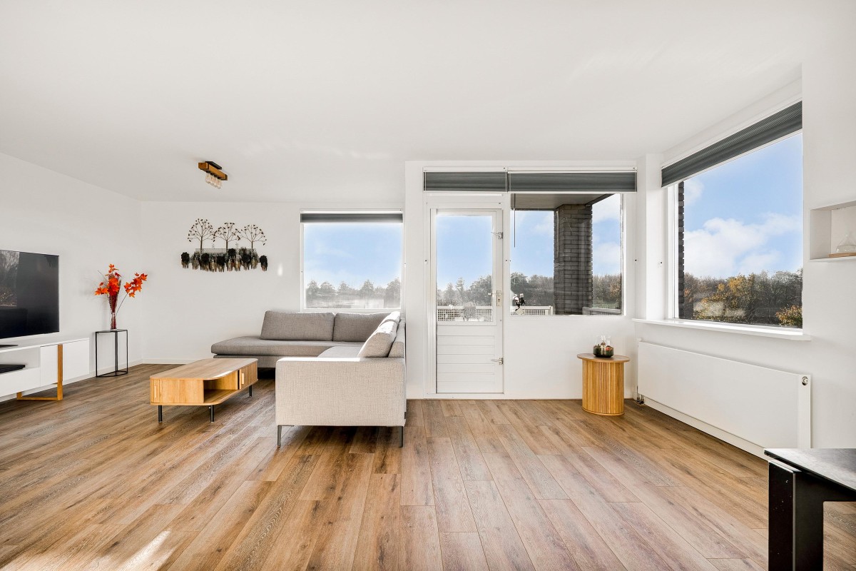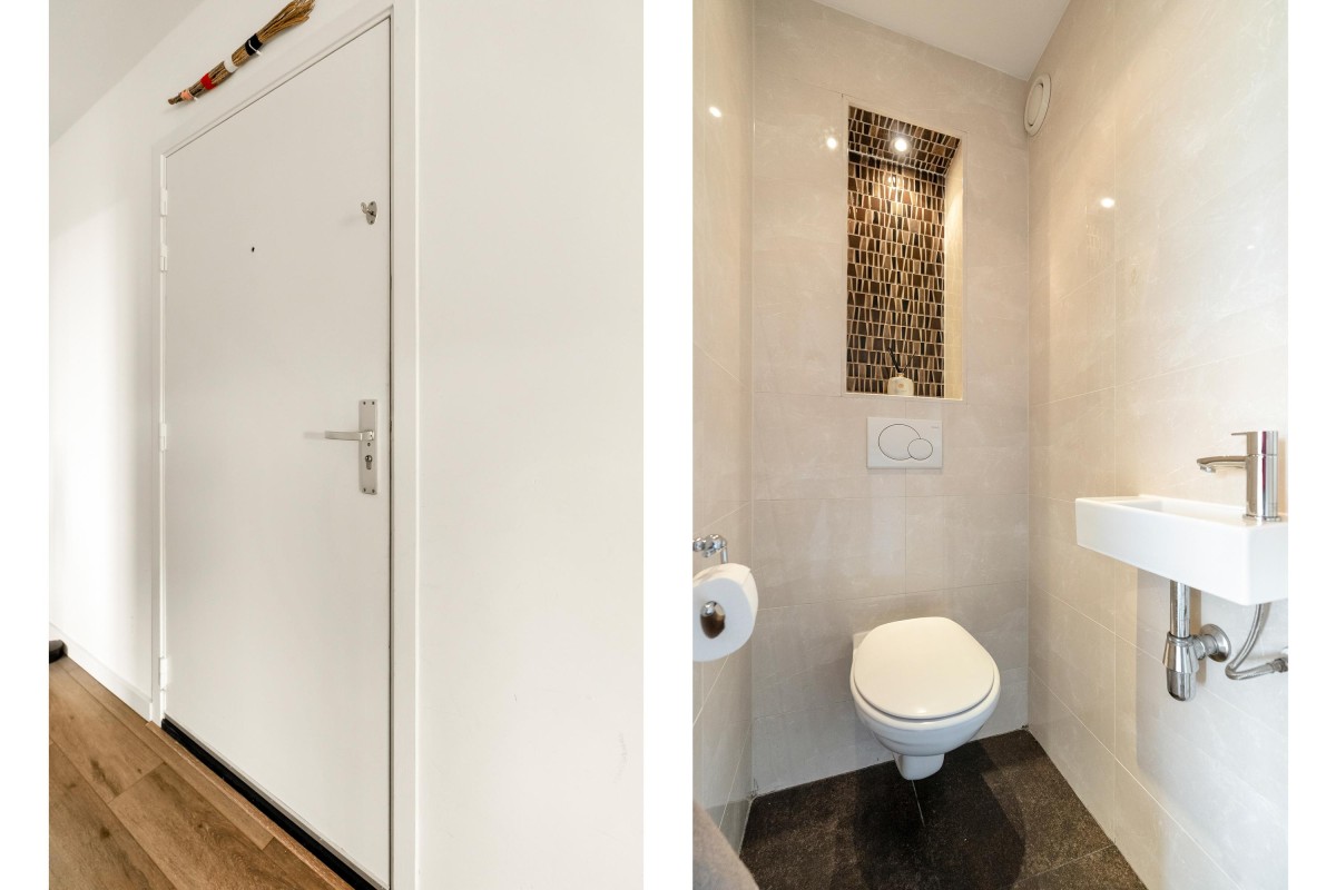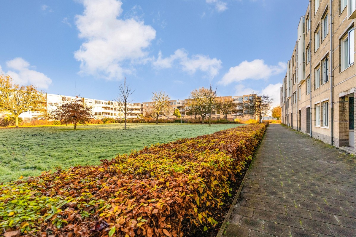 Entree/hal met wasruimte separate toiletruimte (2011) en toegang tot twee slapkamer en de ruime licht woonkamer. De lichte woonkamer, aan de achterzijde van de woning, heeft grote raampartijen die zorgen voor een prachtige lichtinval en een open zicht over het gemeentelijk groen. Het balkon is gelegen op het zuiden. De half open keuken is in 2022 vernieuwd en voorzien van lichten fronten, composiet werkblad, oven, combi magnetron, inductie kookplaat, afzuigkap en koel-/vriescombinatie. Verder heeft de keuken voldoende bergruimte in onder en bovenkasten, lades en apothekerskast. De woning beschikt over twee slaapkamers, ieder met een eigen formaat (10m2 en 23 m2). De grootste slaapkamer is eventueel nog op te splitsen in twee afzonderlijke kamers. De in 2022 gerenoveerd badkamer is voorzien van vloerverwarming, ruime inloop douche, wastafel met meubel, handdoekenkast en verlichte spiegel.
