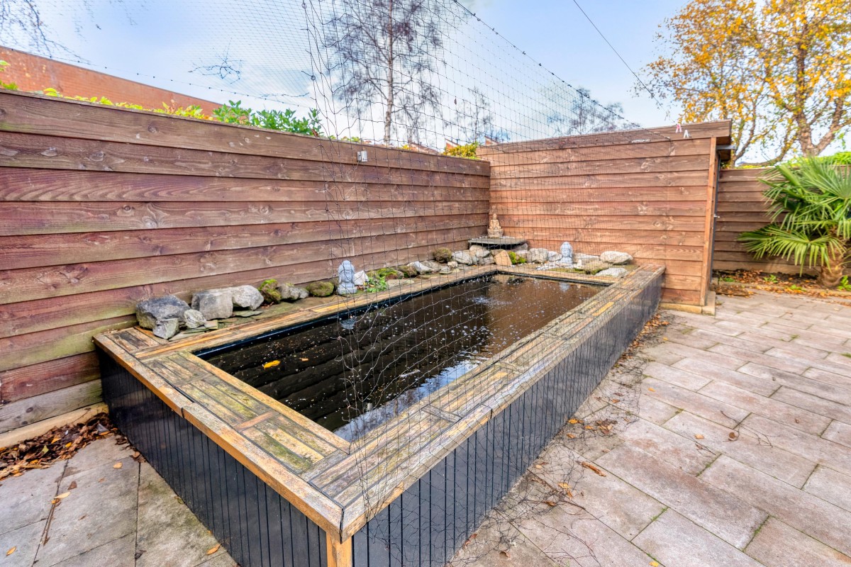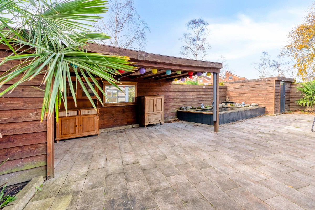 De tuin is bijzonder te noemen door de ronde vorm 'om de woning heen' en biedt naast de gezellige overkapping 2 extra bergingen. De schuttingen geven veel privacy en of je van zon of schaduw houdt, voor iedereen een plek te vinden.