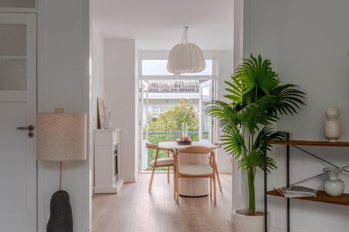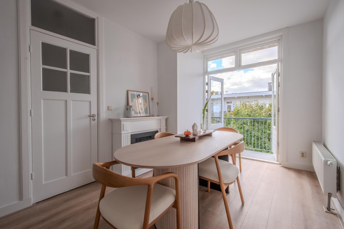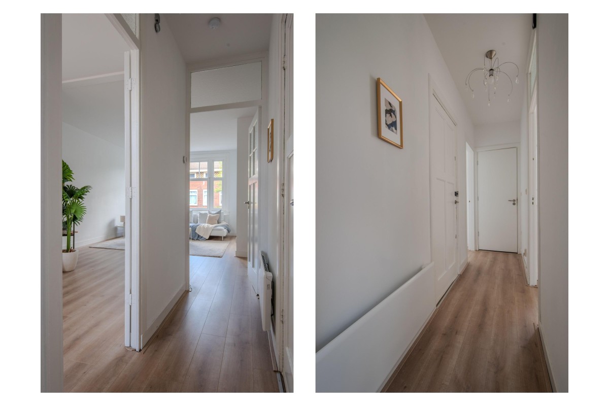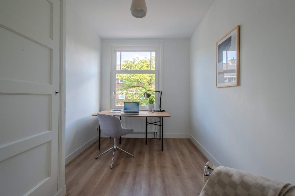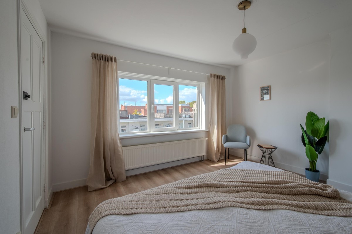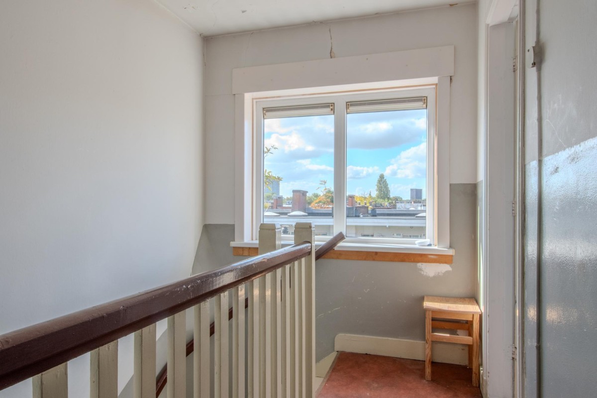 The property consists of two rooms (including a generous bedroom), but the space can also be arranged differently. Thanks to the open-plan living room, it is easy to create an additional bedroom, for example. Originally, this was a 3-room apartment. Furthermore, there is the possibility (subject to the necessary permits) to integrate the largest room on the fourth floor into the apartment via an internal staircase. Additionally, as with the adjacent apartments (after applying for the necessary permits), a rooftop terrace can be created, offering stunning views over Amsterdam.