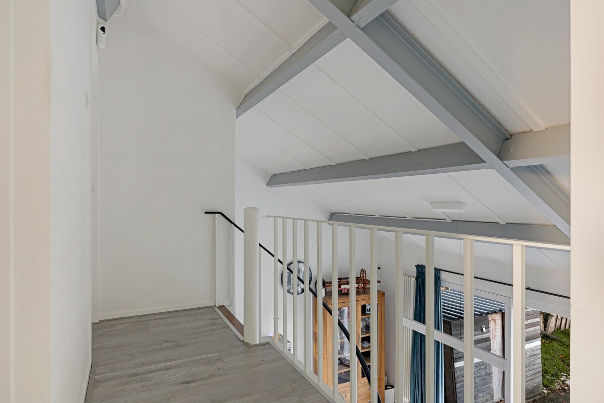 De vloer van de verdieping is eveneens voorzien van laminaat.
