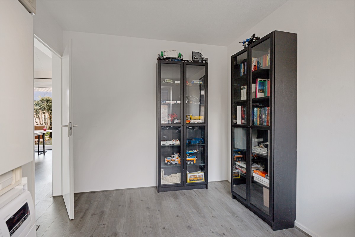 Op de begane grond is ook een slaapkamer, perfect voor wie op de begane grond wil slapen, of als kantoor- of hobbykamer. Verder vindt u hier de aansluitingen voor de wasmachine en wasdroger. De vloer op de begane grond is voorzien van laminaat.