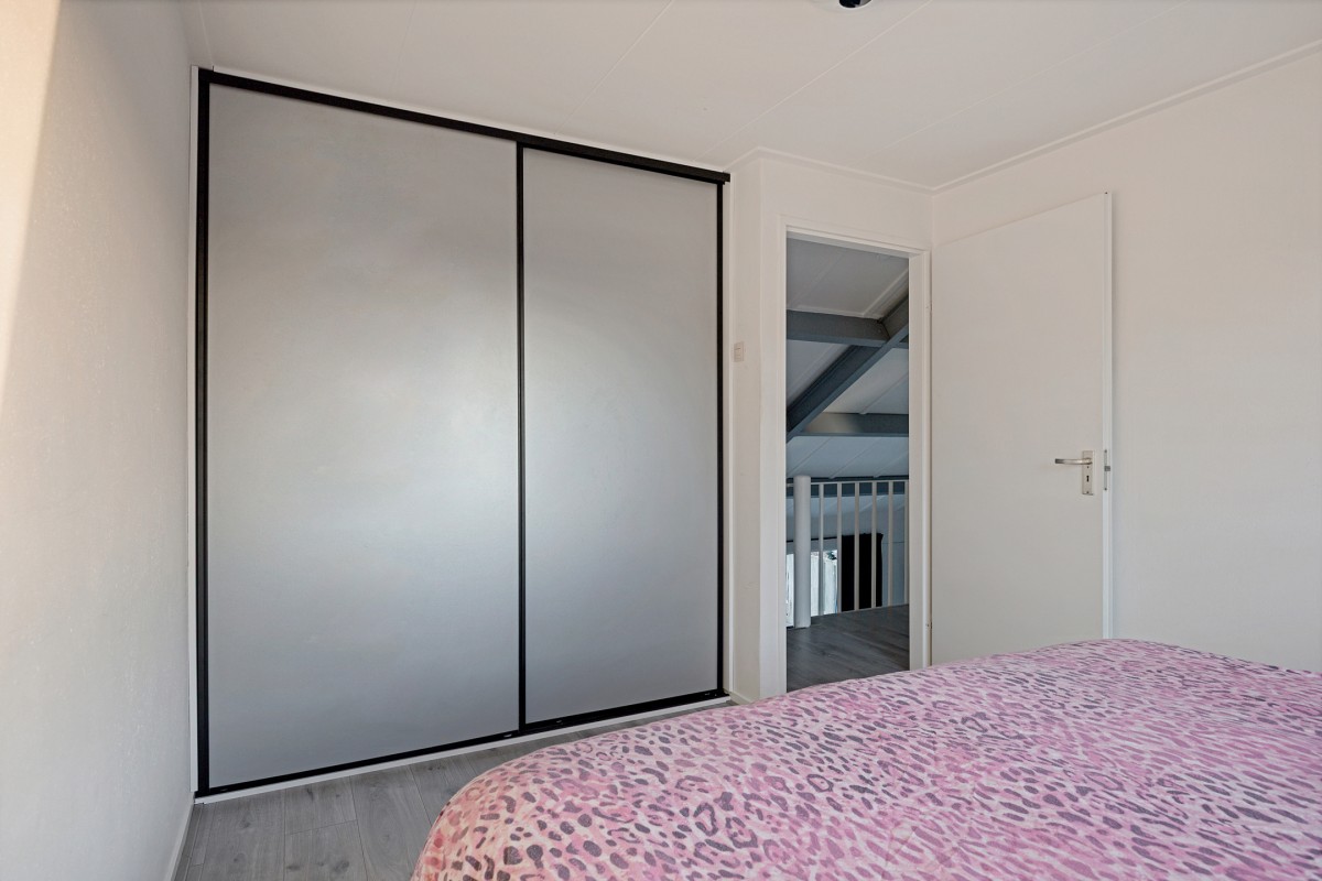 De verdieping heeft twee slaapkamers. De ouderslaapkamer is voorzien van een praktische vaste kastenwand, wat zorgt voor veel opbergruimte. Vanuit de tweede slaapkamer is er via een vaste trap toegang tot de bergzolder, die perfect is voor het opbergen van seizoensgebonden spullen en andere benodigdheden.