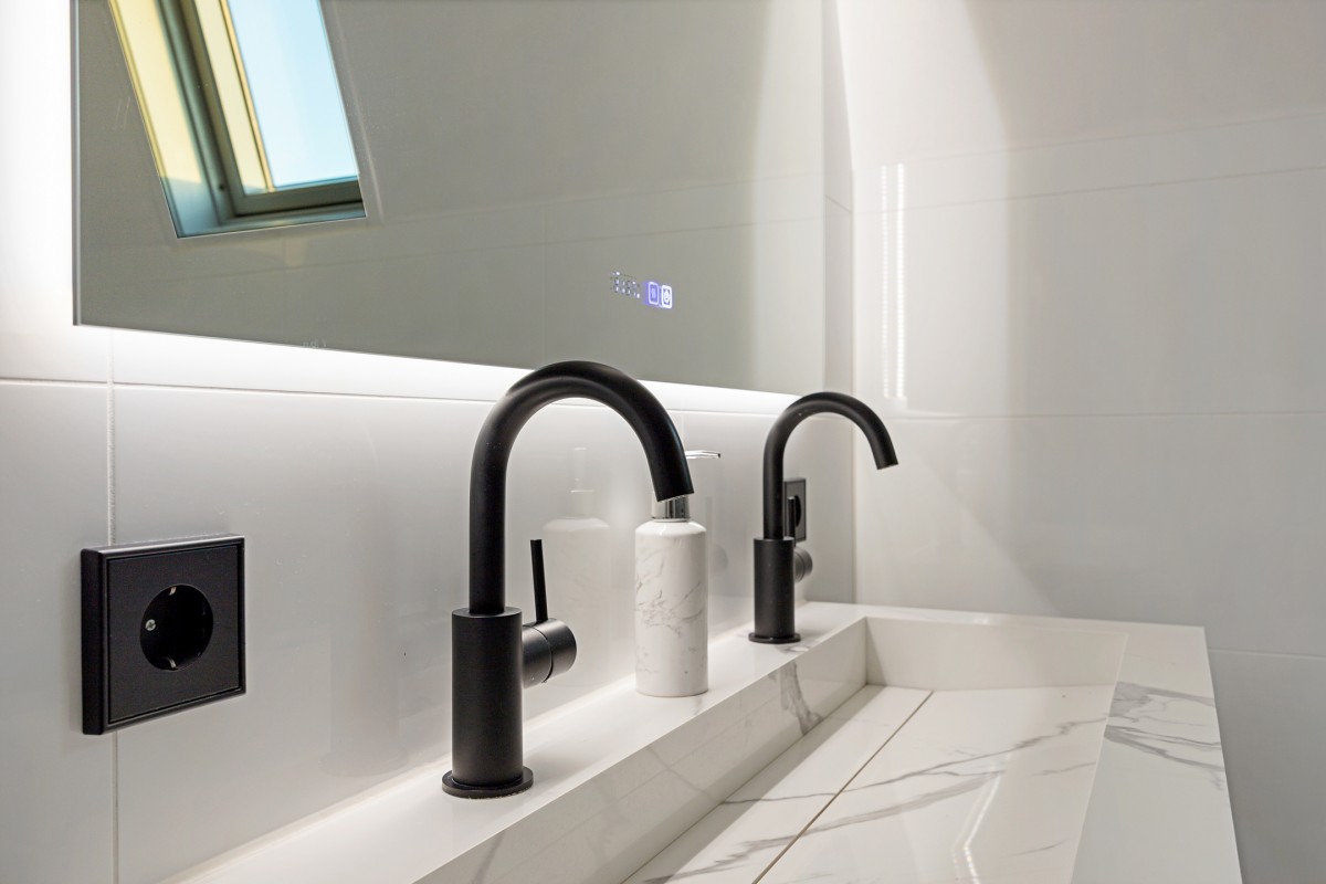 In 2023 werd de badkamer volledig vernieuwd en praktisch ingedeeld. Deze moderne ruimte beschikt over een inloopdouche, een vrij-hangend toilet, een wastafelmeubel met dubbele kraan en een te openen raam voor extra ventilatie. Daarnaast is er een bergkast met de opstelplaats voor de cv-ketel.