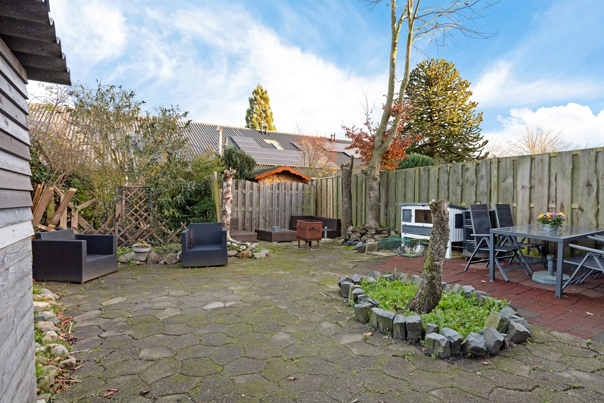 De achtertuin, gelegen op het oosten, biedt volop zonlicht van de ochtend tot de middag. De tuin is netjes afgewerkt met schuttingen voor privacy en degelijke bestrating, waardoor het een ideale plek is voor ontspanning of een gezellige BBQ. Er is voldoende ruimte voor een heerlijke lounge-set.