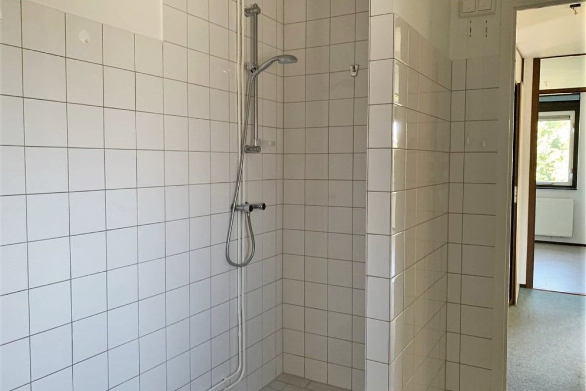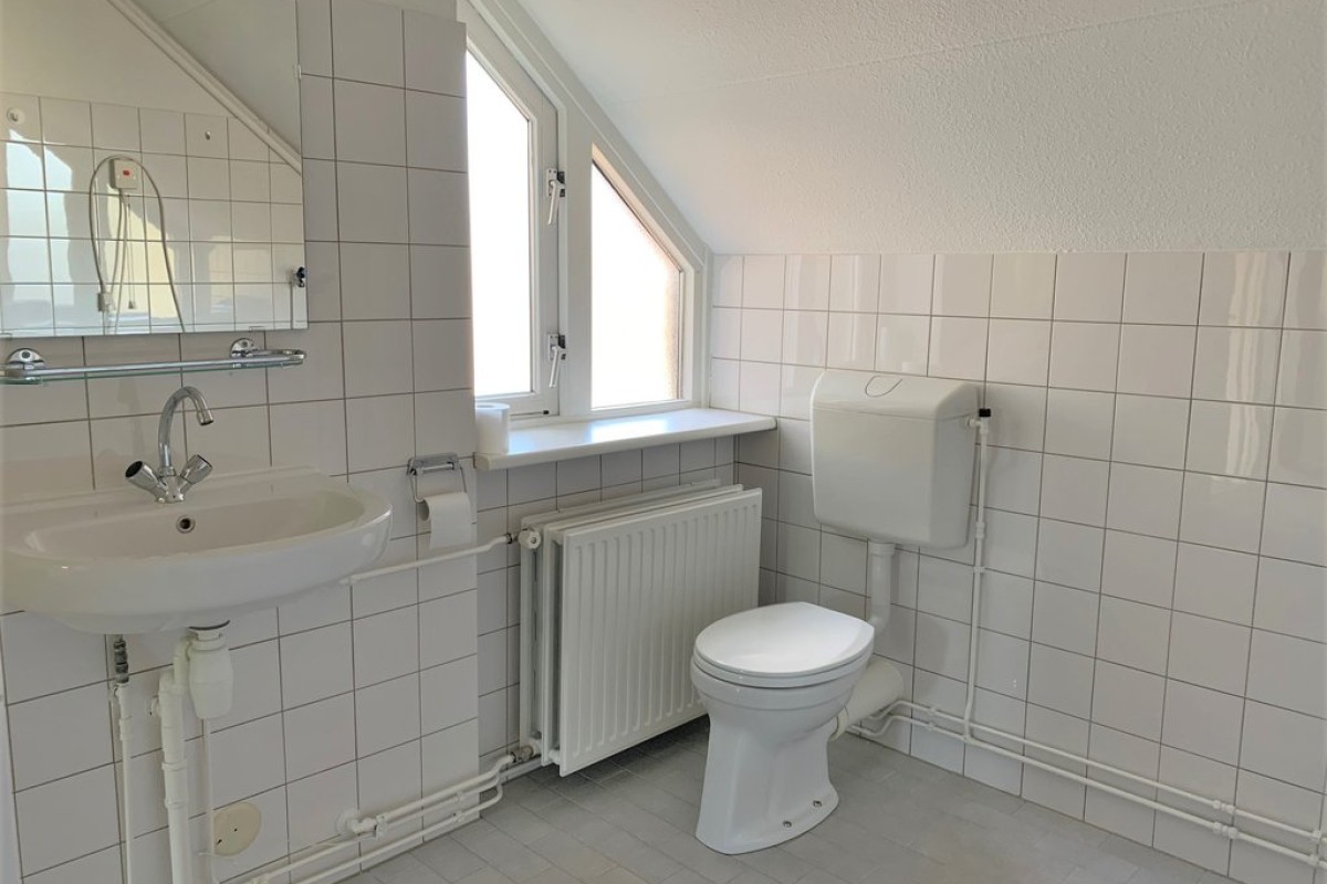 Overloop, 3 slaapkamers en nette badkamer in lichte kleurstelling voorzien van douche, wastafel, 2e toilet en wasmachineaansluiting;