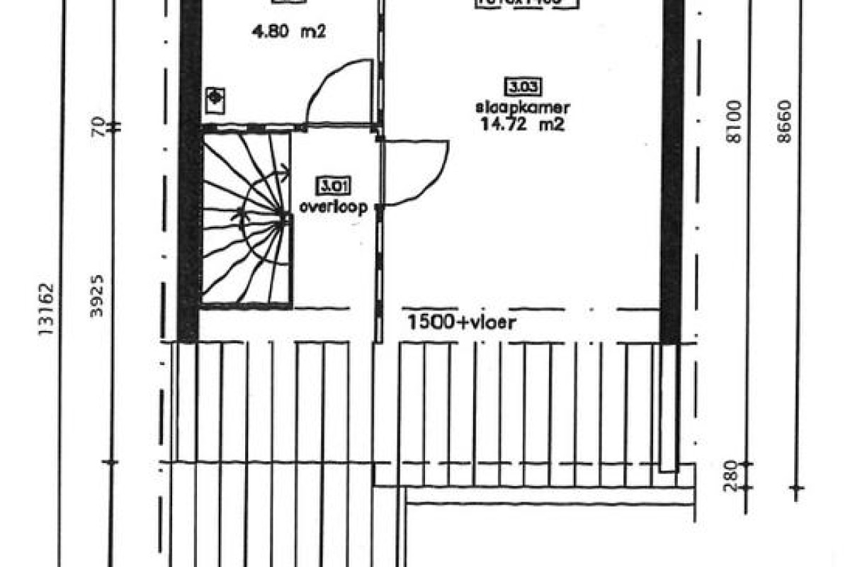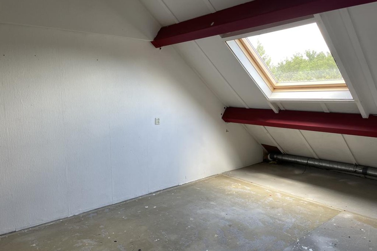 Via een vaste trap bereikbare verdieping met voorzolder, bergruimte met c.v.-opstelling (Remeha) en een zeer grote 4e slaapkamer.