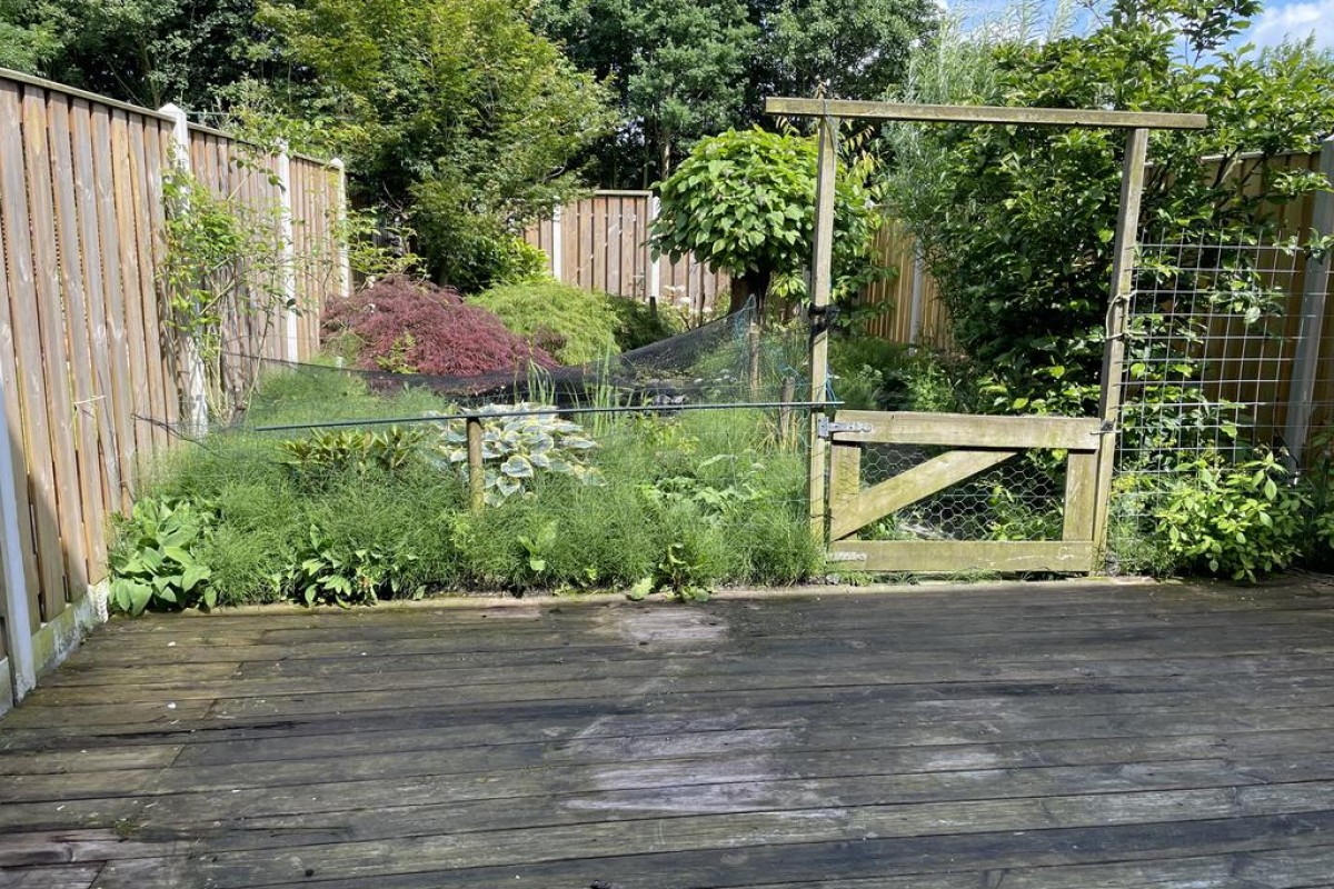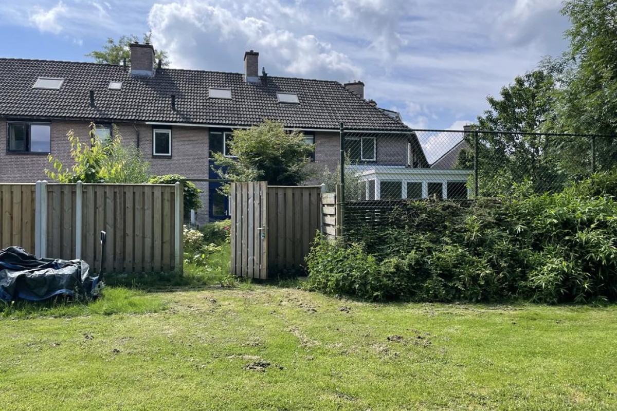 Bij het verkochte behoort een aandeel in een gezamenlijk terrein. Deze is ingericht als een pleintje met speeltoestellen. De jaarlijkse bijdrage is circa € 70 euro.