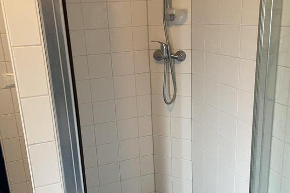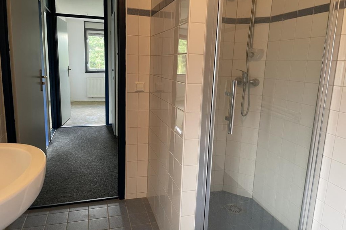 Overloop, 3 slaapkamers en nette badkamer in lichte kleurstelling voorzien van douche, wastafel, 2e toilet en wasmachineaansluiting;