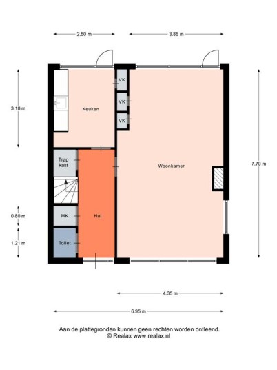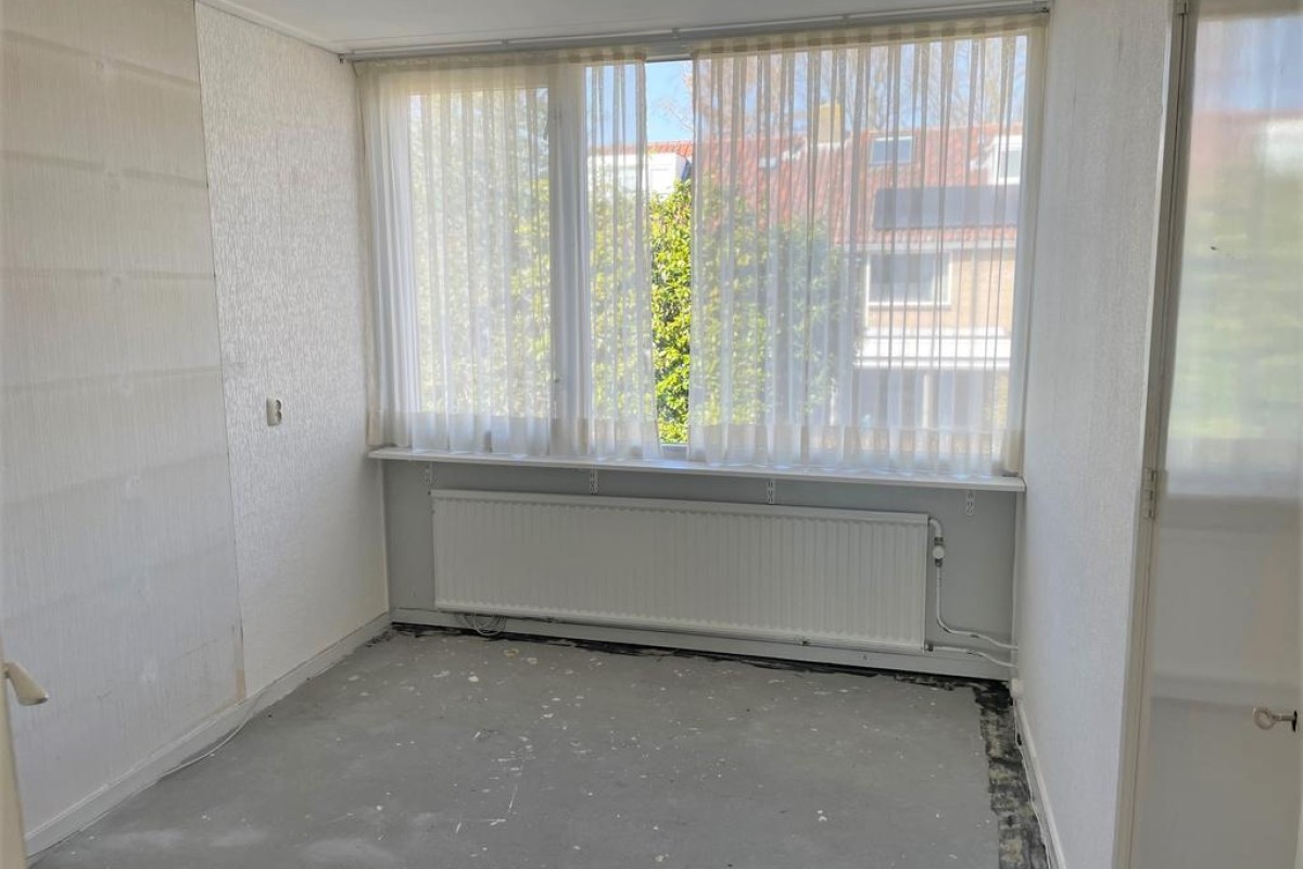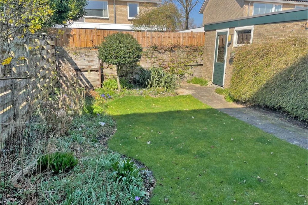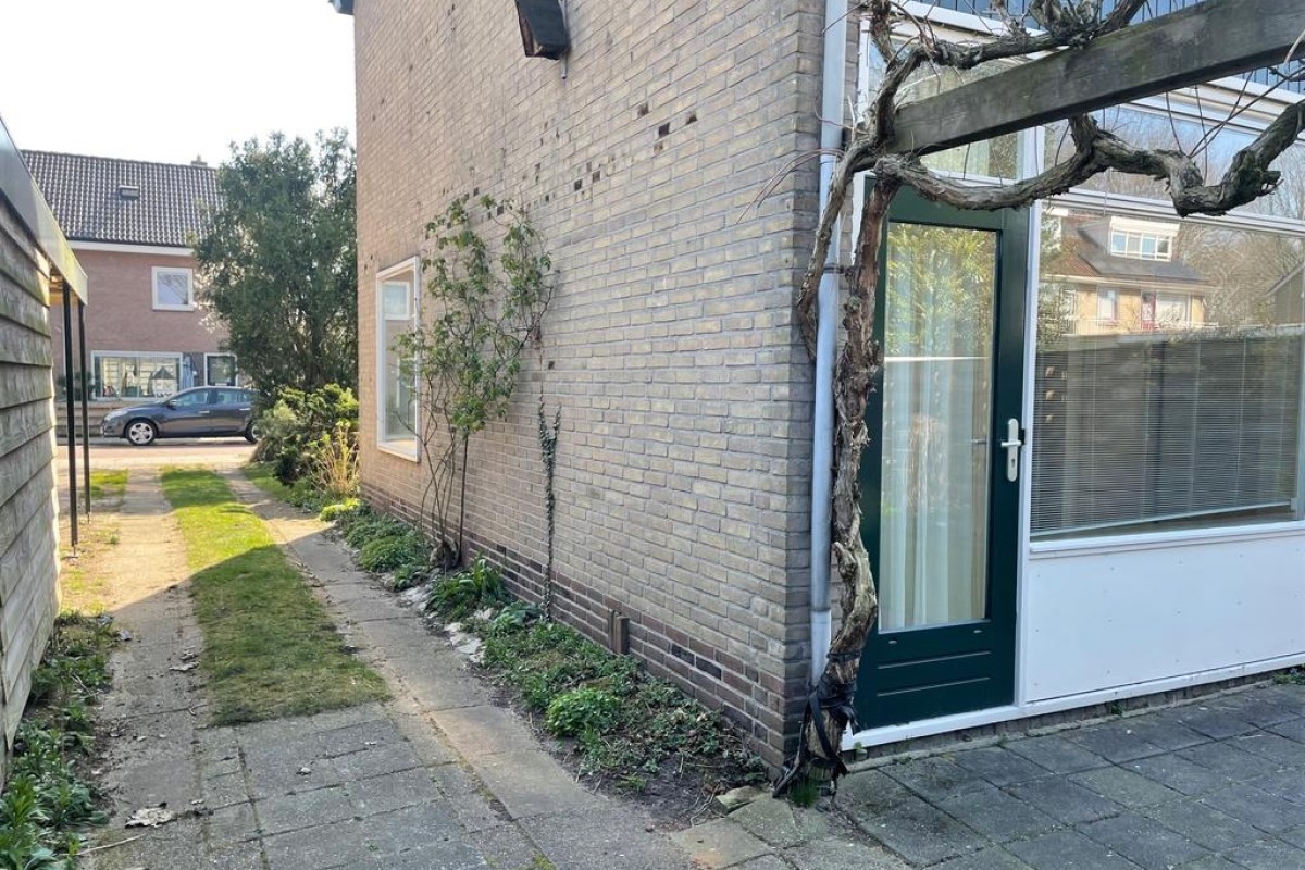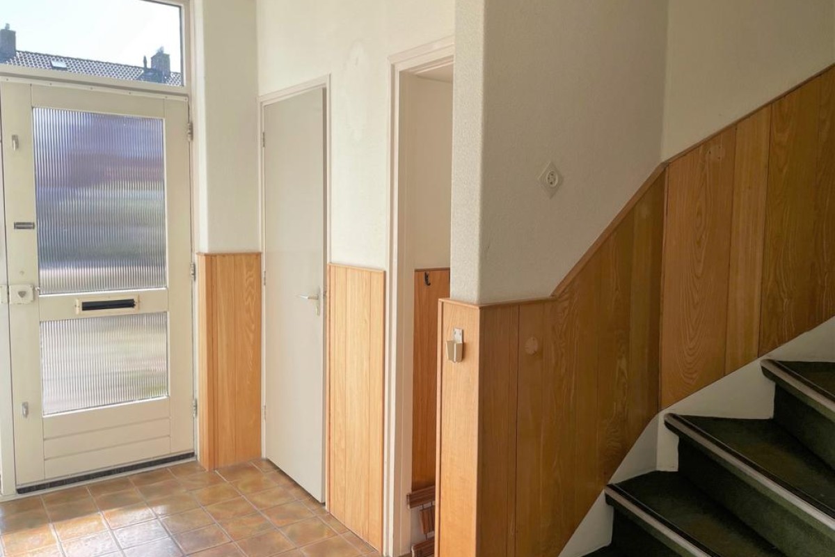 Begane grond: ruime entree met meterkast, toilet, trapopgang en trapkast, brede doorzon woonkamer en een dichte keuken met doorgang naar de achtertuin welke op het noordwesten is gelegen. Naast de woning staat een stenen garage.