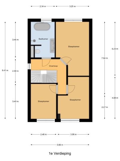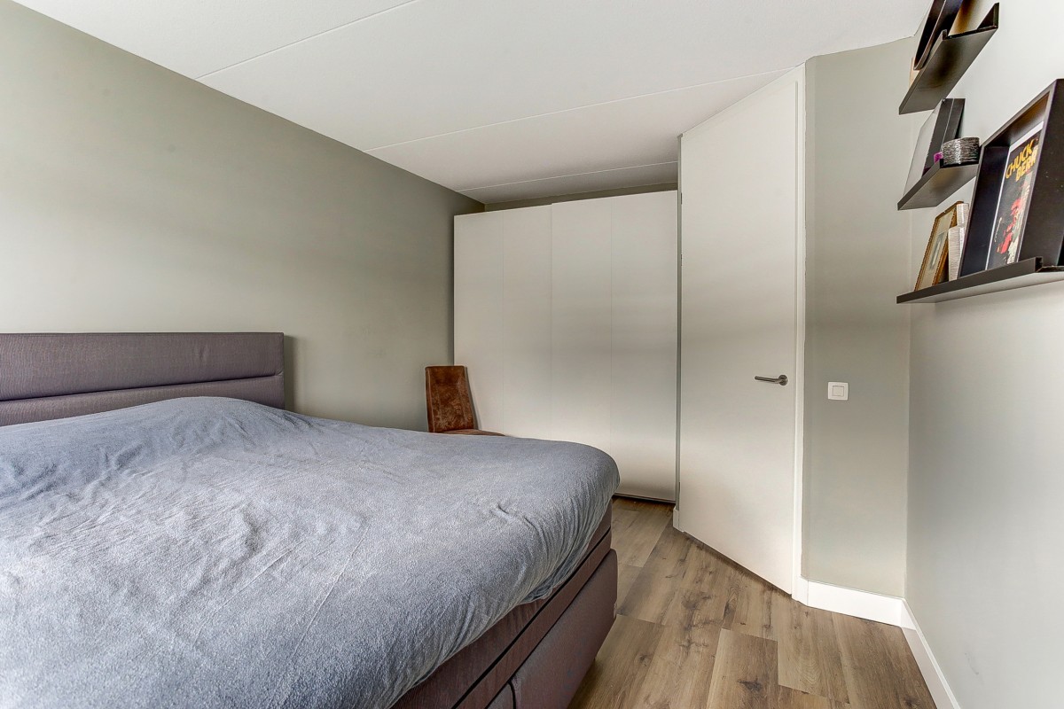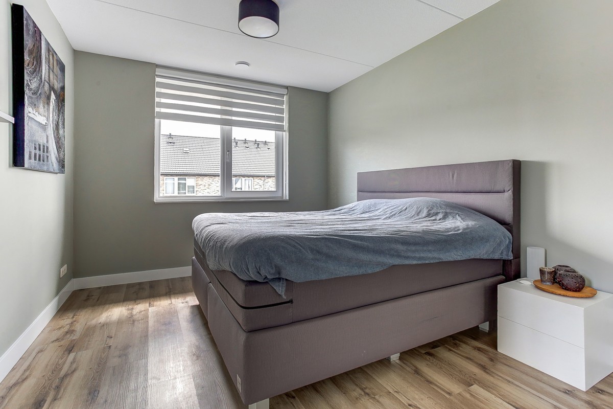 Eerste verdieping: ruime lichte overloop met aansluitend drie royale slaapkamers en de badkamer. Ook deze verdieping wordt middels vloerverwarming verwarmd, waarbij de overloop en slaapkamers eveneens beschikken over een moderne laminaatvloer. De luxe badkamer heeft een mooi vrijstaand design ligbad, separate inloopdouche, 2e hangcloset en een dubbele wastafel met meubel.
