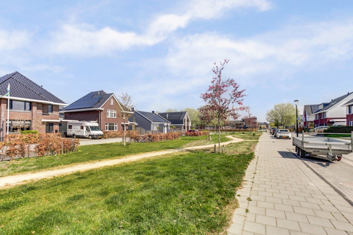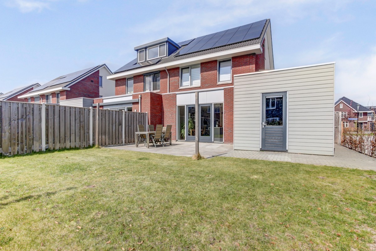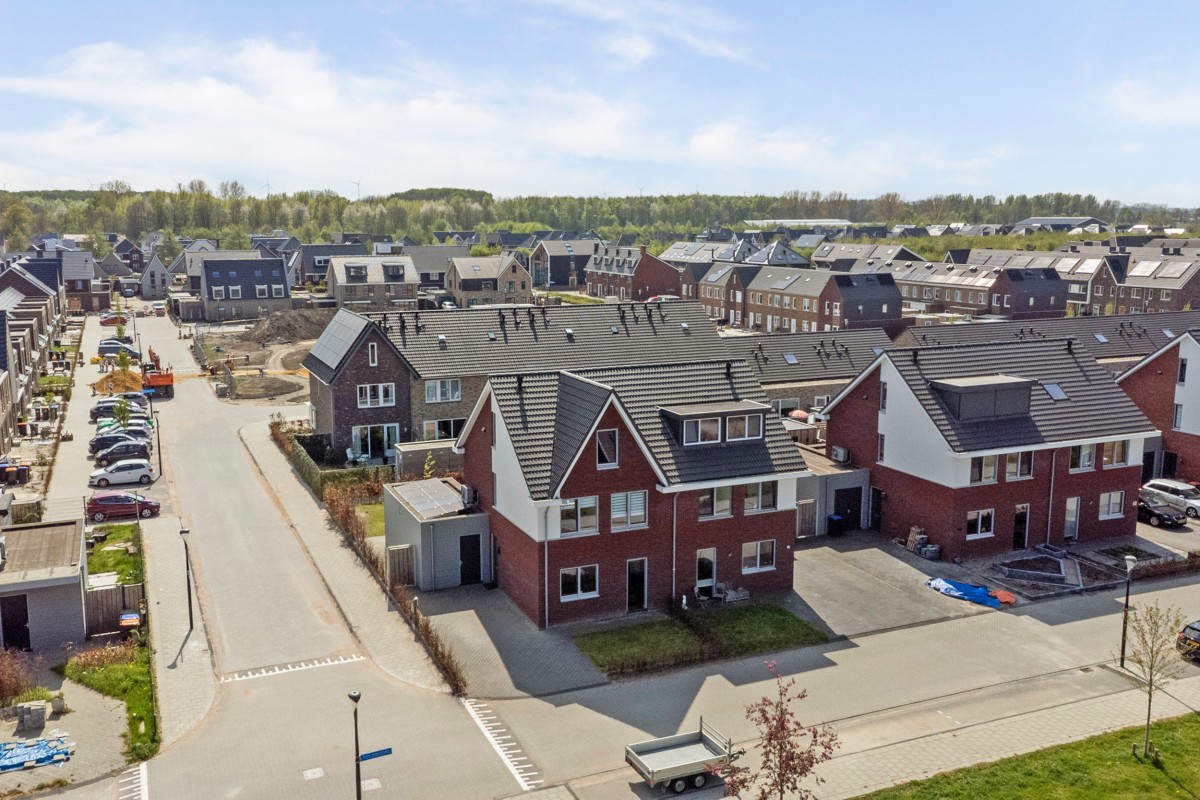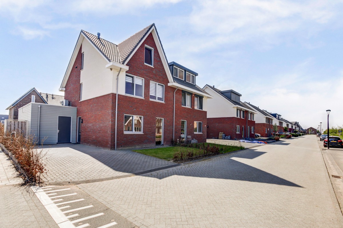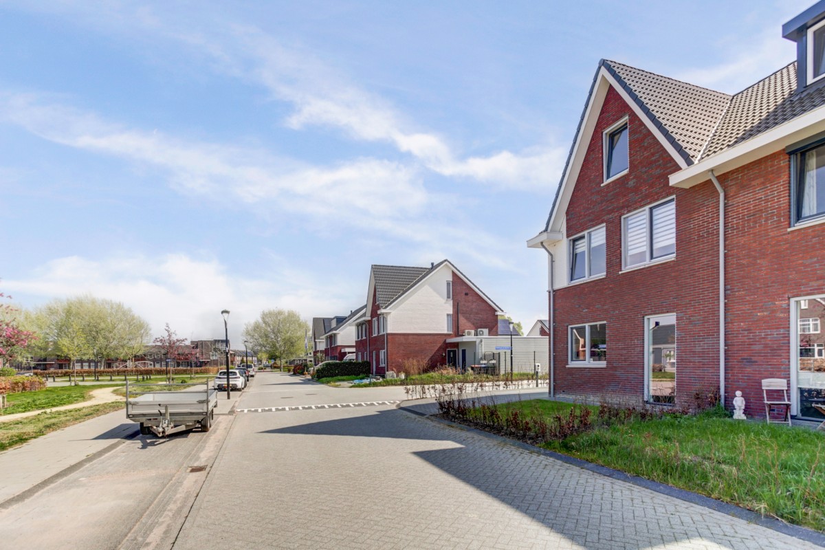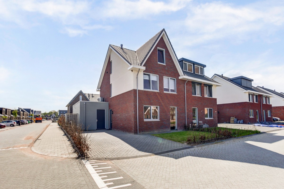 Deze ruime 2-onder-1-kapwoning is op een prachtig hoekperceel van 301m² gelegen met vrij uitzicht over de brede straat en een groenvoorziening. Op de hoek van de straat is een groot speelterrein voor de kinderen beschikbaar, wat goed aansluit op de kinderrijke woonwijk. De woning is in 2021 gebouwd waarbij de laatste hand aan de woonwijk gelegd wordt. Hierdoor bevindt de recent gebouwde woning zich in een volledig jonge en nieuwe woonwijk waar ruime groen- en parkeergelegenheid beschikbaar is. De woning zelf beschikt over een aangebouwde geïsoleerde berging en een grote oprit met een laadvoorziening (ter overname) voor privé parkeerplaats voor tenminste 2 auto's.