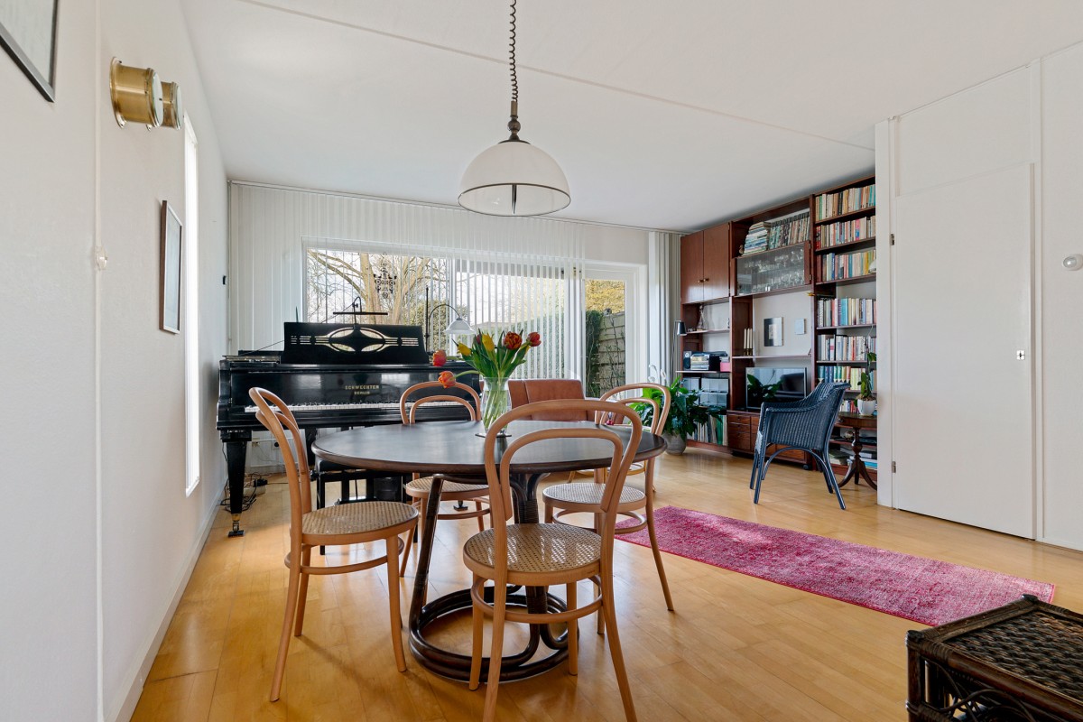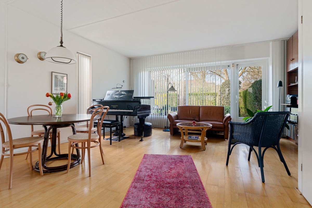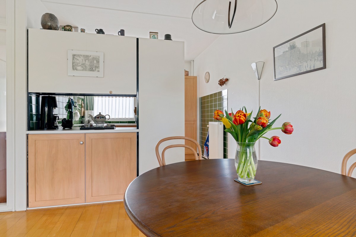 De woonkamer geniet van veel natuurlijk lichtinval en is voorzien van een trapkast voor extra bergruimte en een deur naar de tuin. Er is voldoende ruimte voor een heerlijke zithoek en een eettafel. De indeling biedt bovendien flexibiliteit om de ruimte naar eigen wens in te richten, zodat elke hoek optimaal benut kan worden.