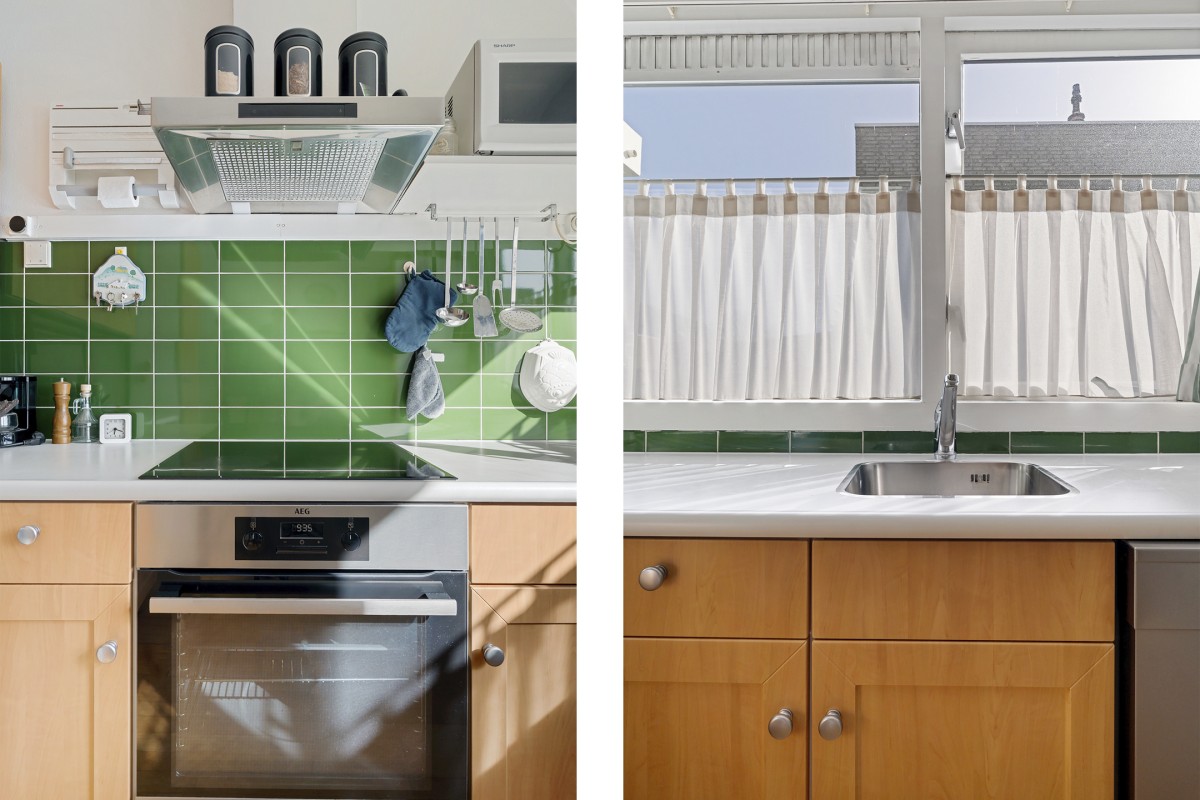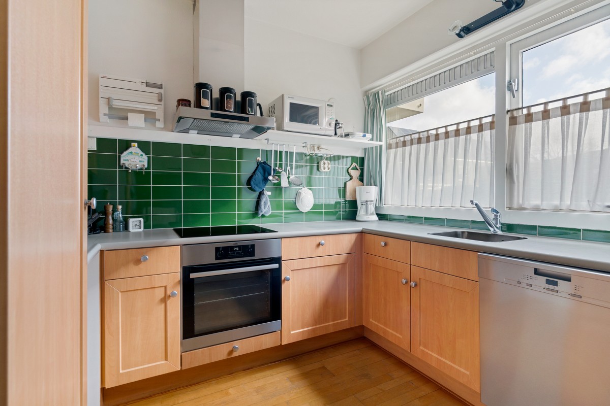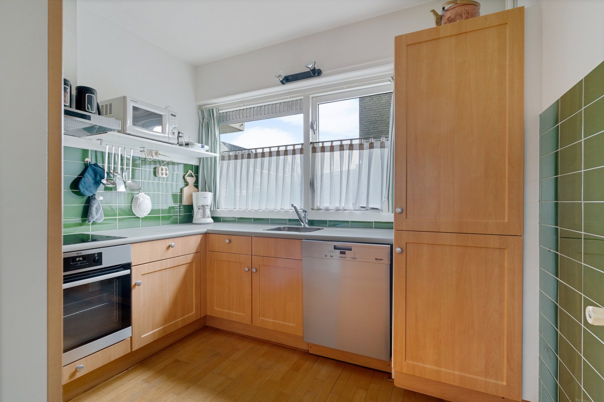 De keuken is aan de voorzijde van de woning gelegen en voorzien van een oven, vaatwasser, koelkast met vriesgedeelte, inductiekookplaat en afzuigkap.
