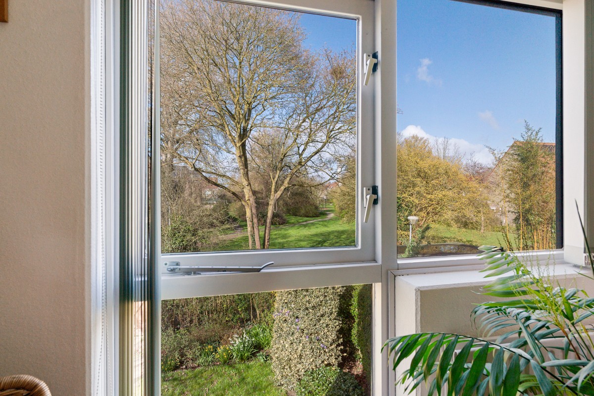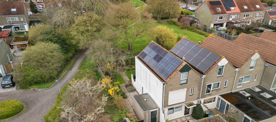 Uw op het westen gelegen achtertuin grenst aan een riant stuk openbaar groen met volwassen bomen, een heerlijk grasveld en een speelveld voor de kinderen. Privacy en zonlicht zijn hier maximaal door het ontbreken van directe achterburen.