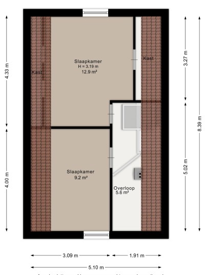 Op deze verdieping bevinden zich twee slaapkamers, beide voorzien van handige knieschotberging. Hier vindt u voldoende plek om spullen netjes op te bergen, terwijl de kamers zelf licht en ruim aanvoelen – perfect als slaap- of werkruimte.