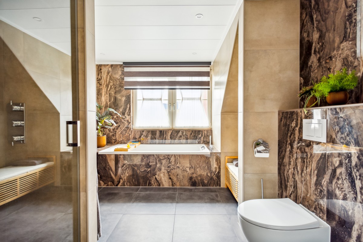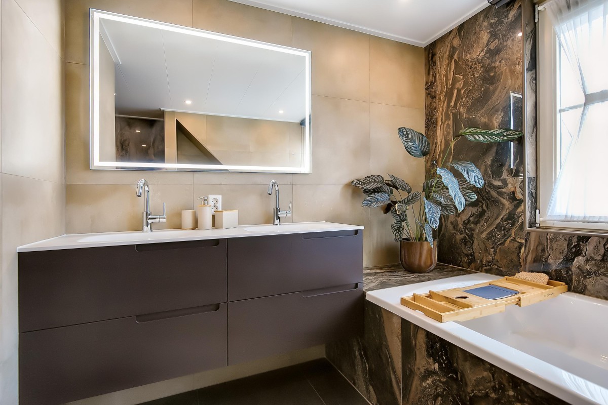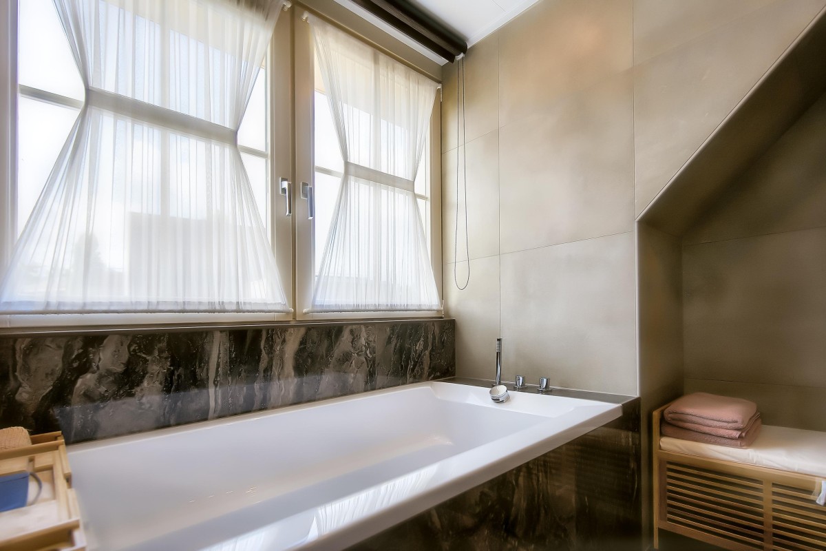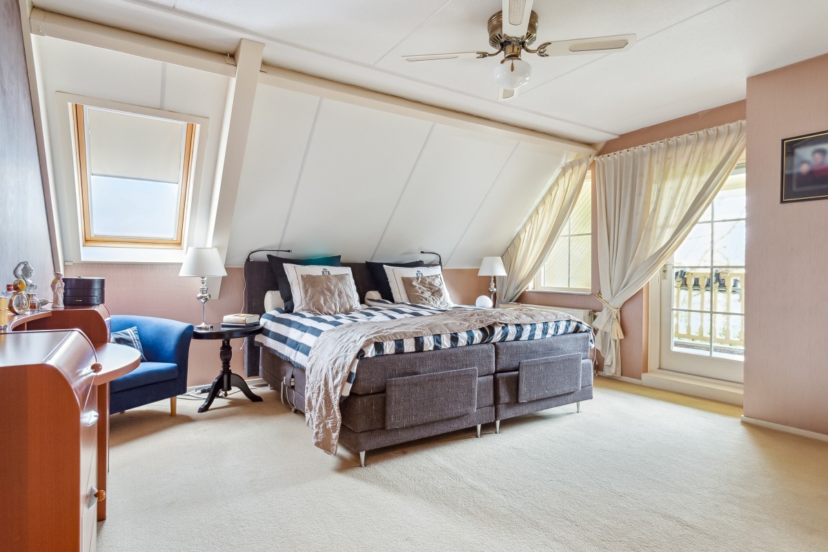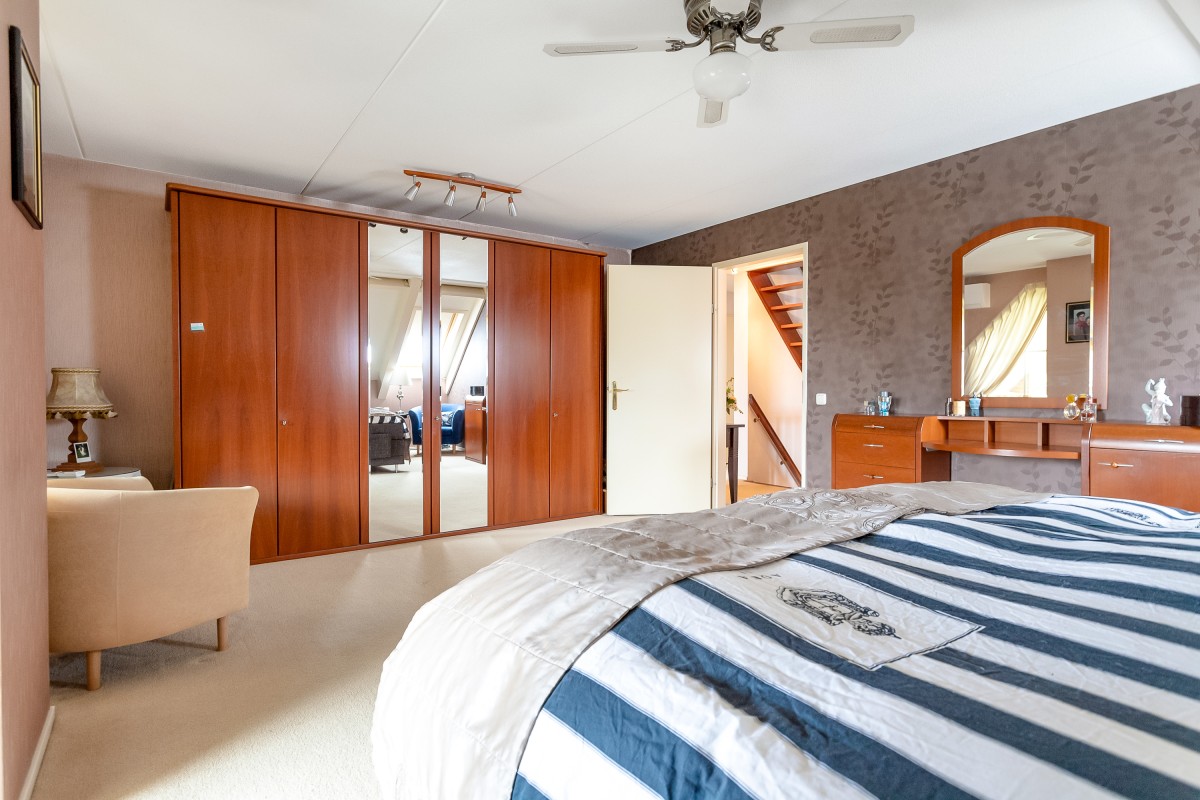 De overloop geeft toegang tot 5 grote slaapkamers van verschillende formaten, de recent gerenoveerde badkamer (2023) en een trap naar de zolder. De hoofdslaapkamer van maar liefst 28 m² bevindt zich aan de achterzijde van de woning. Deze kamer is voorzien van airco en biedt toegang tot een loggia van ongeveer 12 m² (inpandig balkon). De badkamer is uitgerust met een ligbad, dubbele wastafel, vrij-hangend toilet, bidet en een plafonddouche met meerdere functies en zitgedeelte.