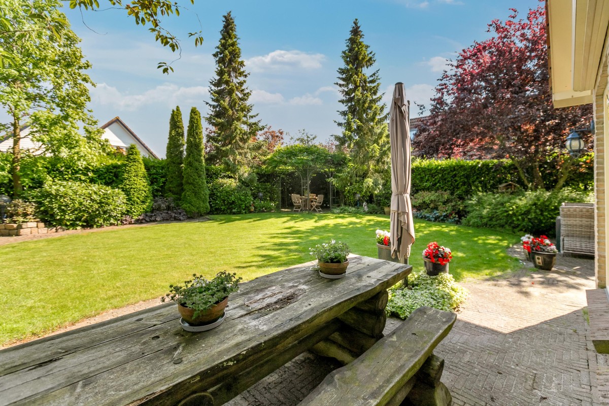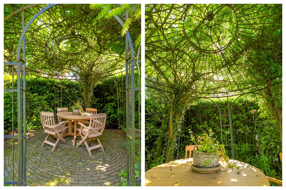 De tuin is bereikbaar vanuit zowel de keuken als de woonkamer en is een ware oase voor tuinliefhebbers. De tuin biedt voldoende zitplekken, zowel in de zon als in de schaduw, bijvoorbeeld onder de prieel of op het buitenterras.