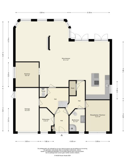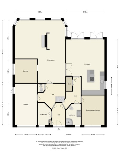 Lees verderVanuit de diverse hallen bereik je de woonkamer, keuken, bijkeuken, een slaapkamer/werkkamer, badkamer en de garage. De inpandige garage biedt plaats voor één auto en heeft een elektrisch bedienbare deur.