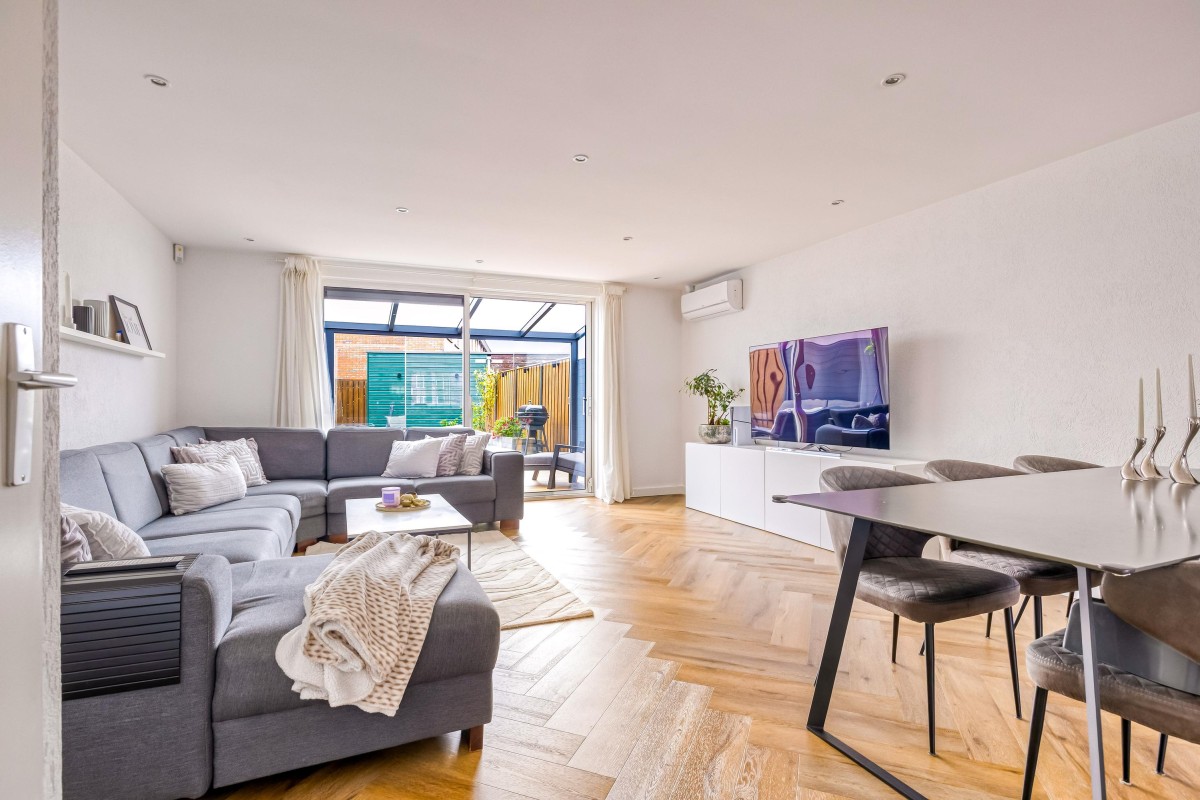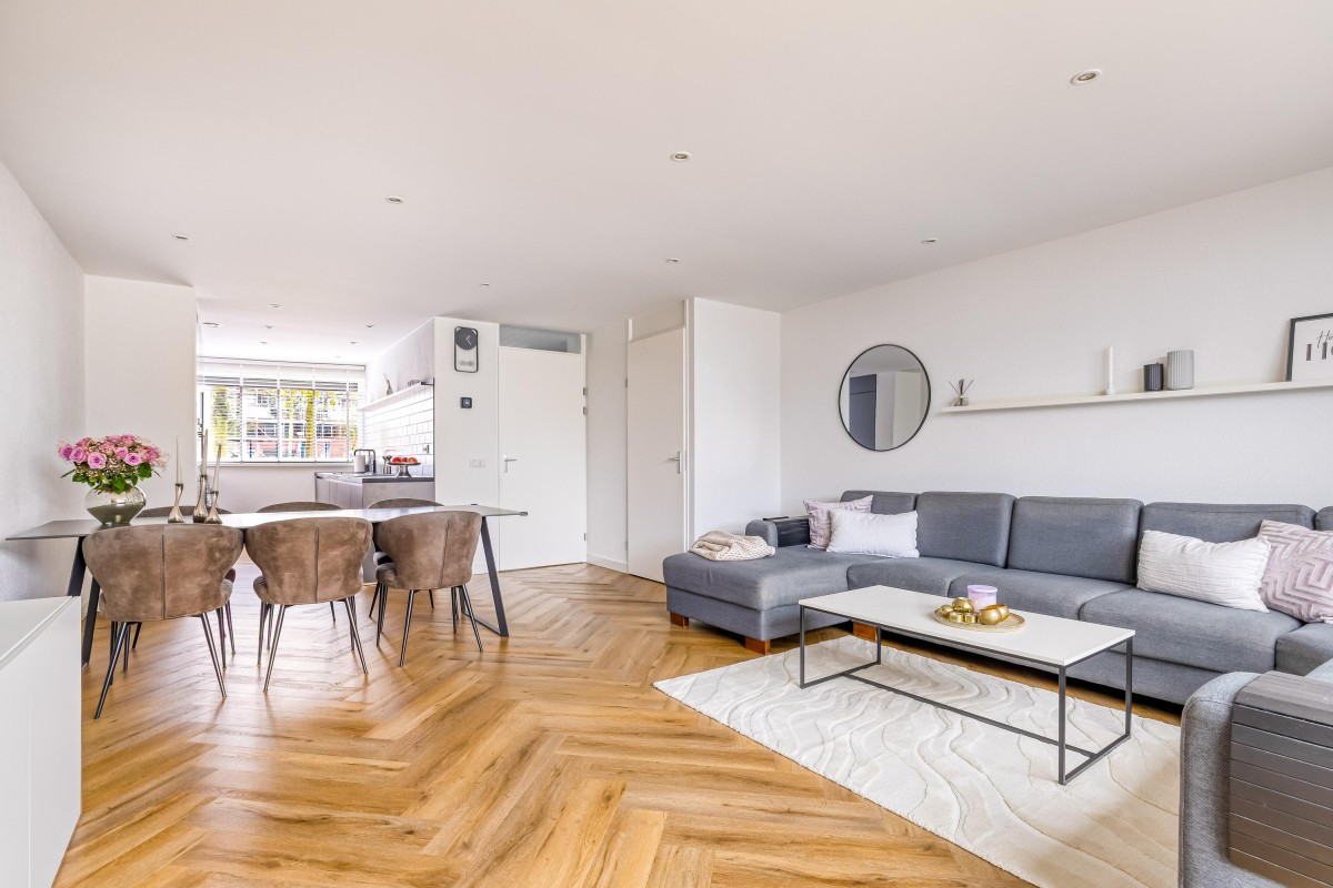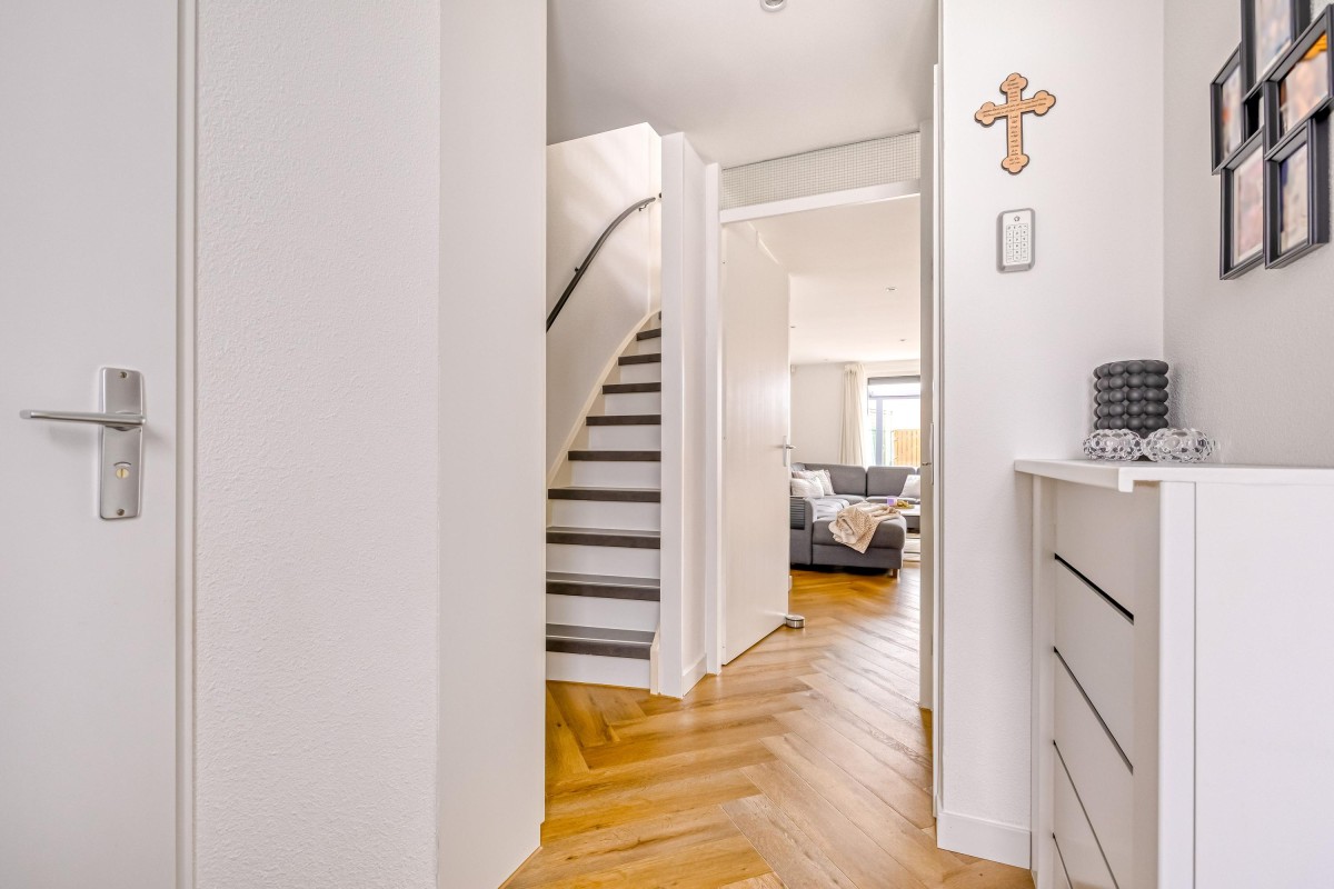 De begane grond is in 2023 voorzien van een fraaie pvc visgraadvloer met vloerverwarming voor extra comfort.