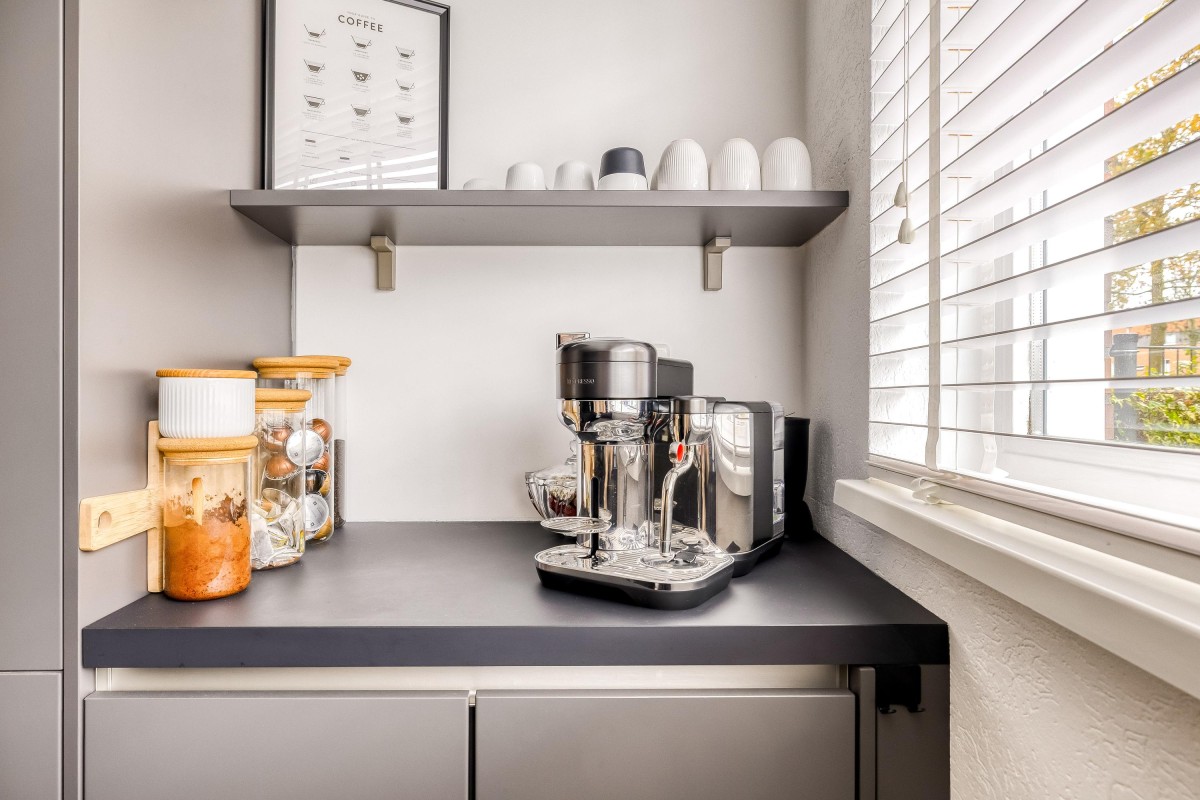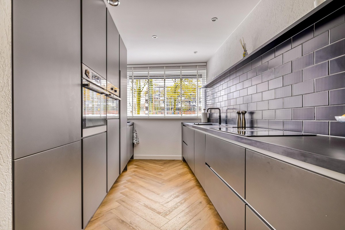 De moderne, luxe keuken (geïnstalleerd in 2020) bevindt zich aan de voorzijde van de woning. Met inbouwapparatuur zoals een vaatwasser, koelkast, combioven, inductiekookplaat met geïntegreerde afzuiging en een Quooker, is deze keuken zowel praktisch als stijlvol.