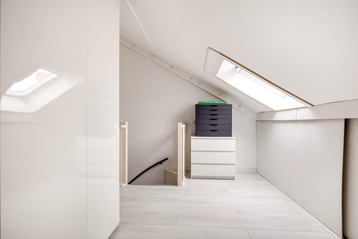 Een grote voorzolder aan de achterzijde, ideaal voor was- en opbergruimte.
