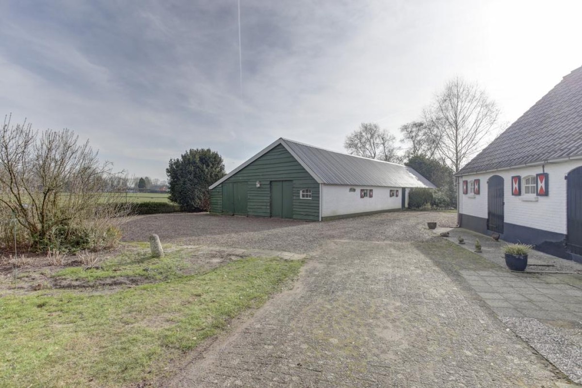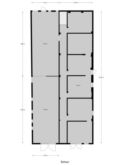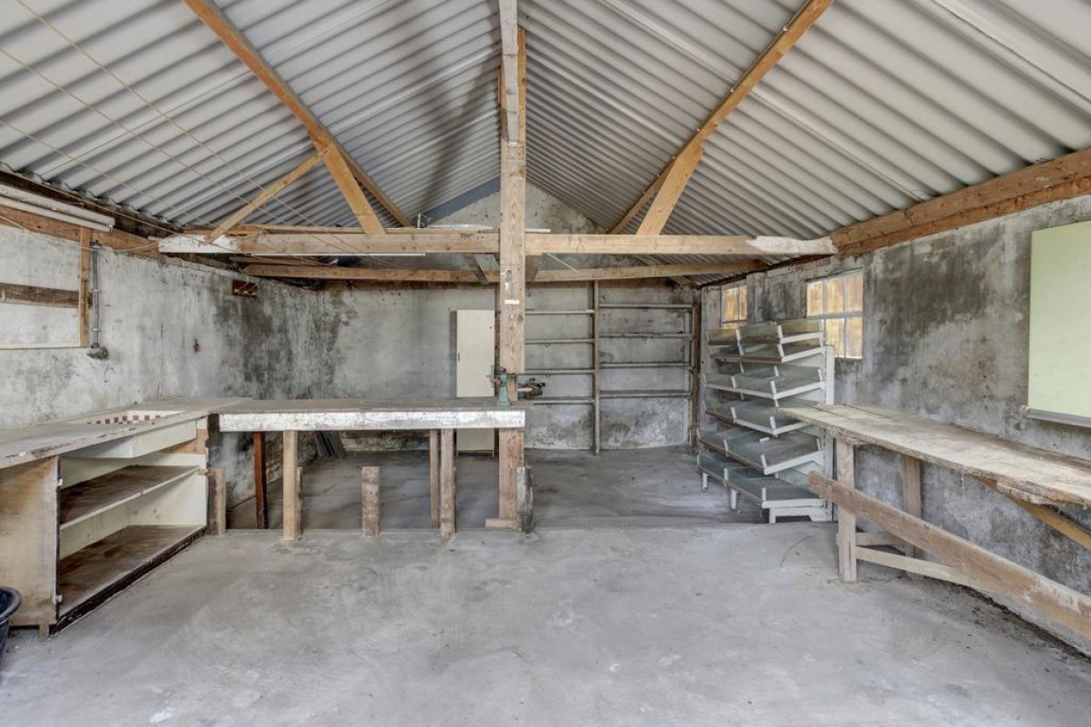 Een voormalige veeschuur met openslaande deuren aan de voorzijde. Afmeting circa: 20,10 x 9,11 meter.