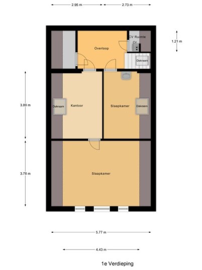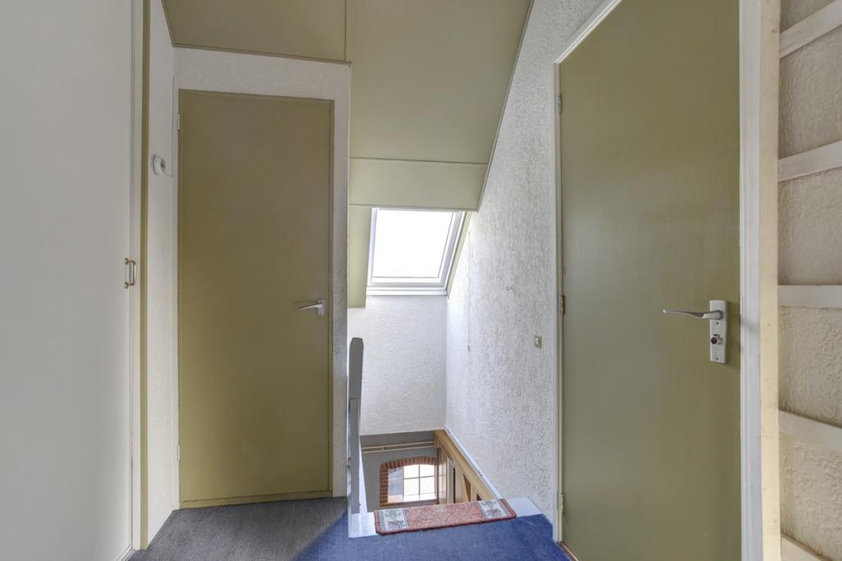 Eerste verdieping: vaste trap naar de overloop met toegang tot 3 kamers. Deze verdieping is tevens voorzien van de nodige bergruimte en c.v.-ruimte.