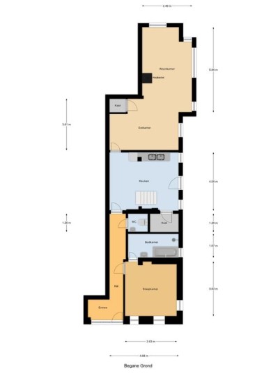 Begane grond: de woning beschikt over een entree aan de achterzijde van de woning alsmede aan de zijkant van de woning. Middels de entree aan de zijkant van de woning bereikt u de woonkeuken met keukenblok.