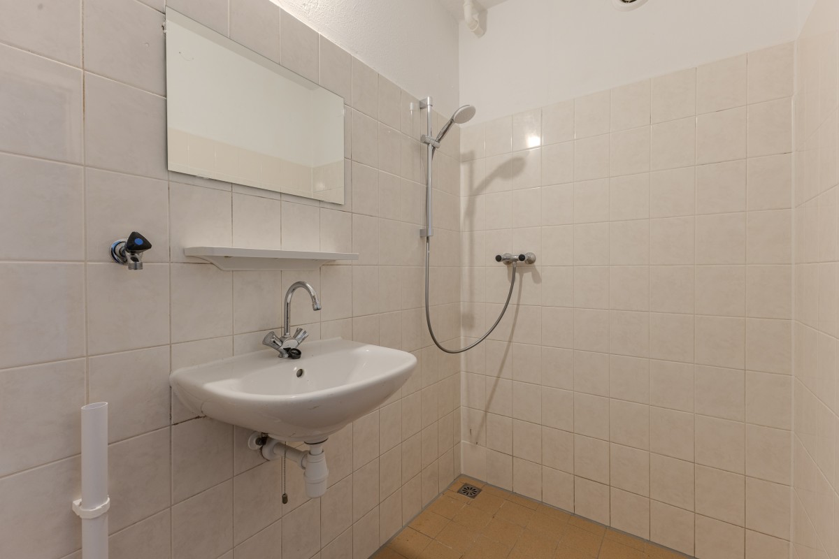 Via een centrale hal bereikt u de badkamer, die is uitgerust met een douche, wastafel en een aansluiting voor de wasmachine. Het toilet, met fonteintje, bevindt zich in een separate ruimte.