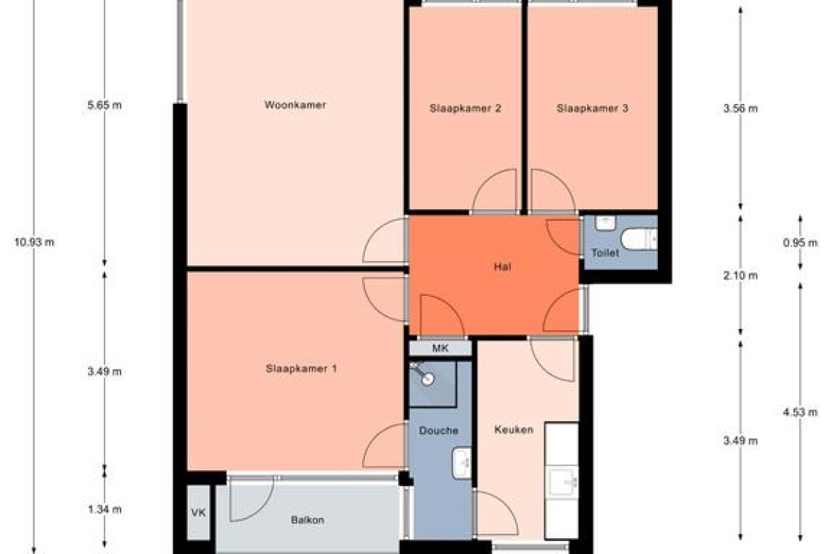 Indeling: entree, ruime hal, met toegang tot de fraaie keuken, drie slaapkamers, woonkamer, meterkast en toilet.