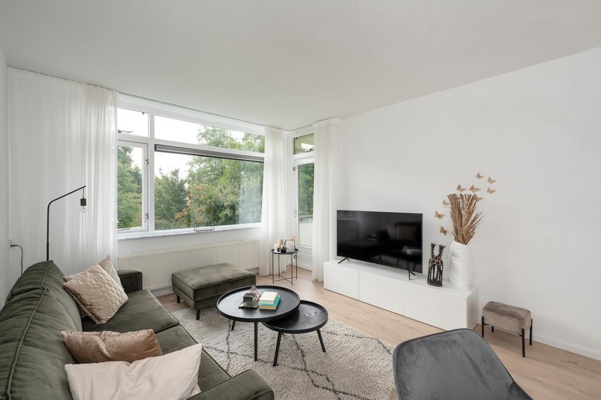 Lees verderDe badkamer is geheel vernieuwd en beschikt over een douche en wastafel. Het balkon aan de voorzijde is via de slaapkamer te bereiken. De woonkamer heeft veel lichtinval en kijkt fraai uit over een breed grasveld. Ook aan deze kant is een ruim balkon aanwezig welke bereikbaar is via de woonkamer en de twee slaapkamers.