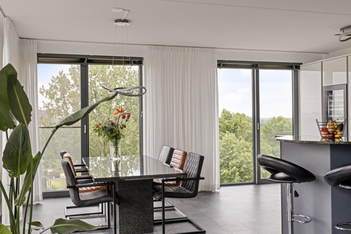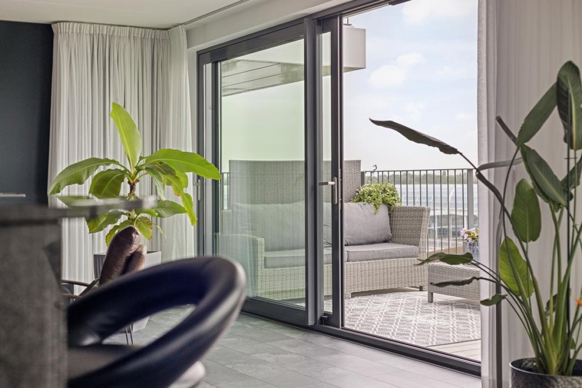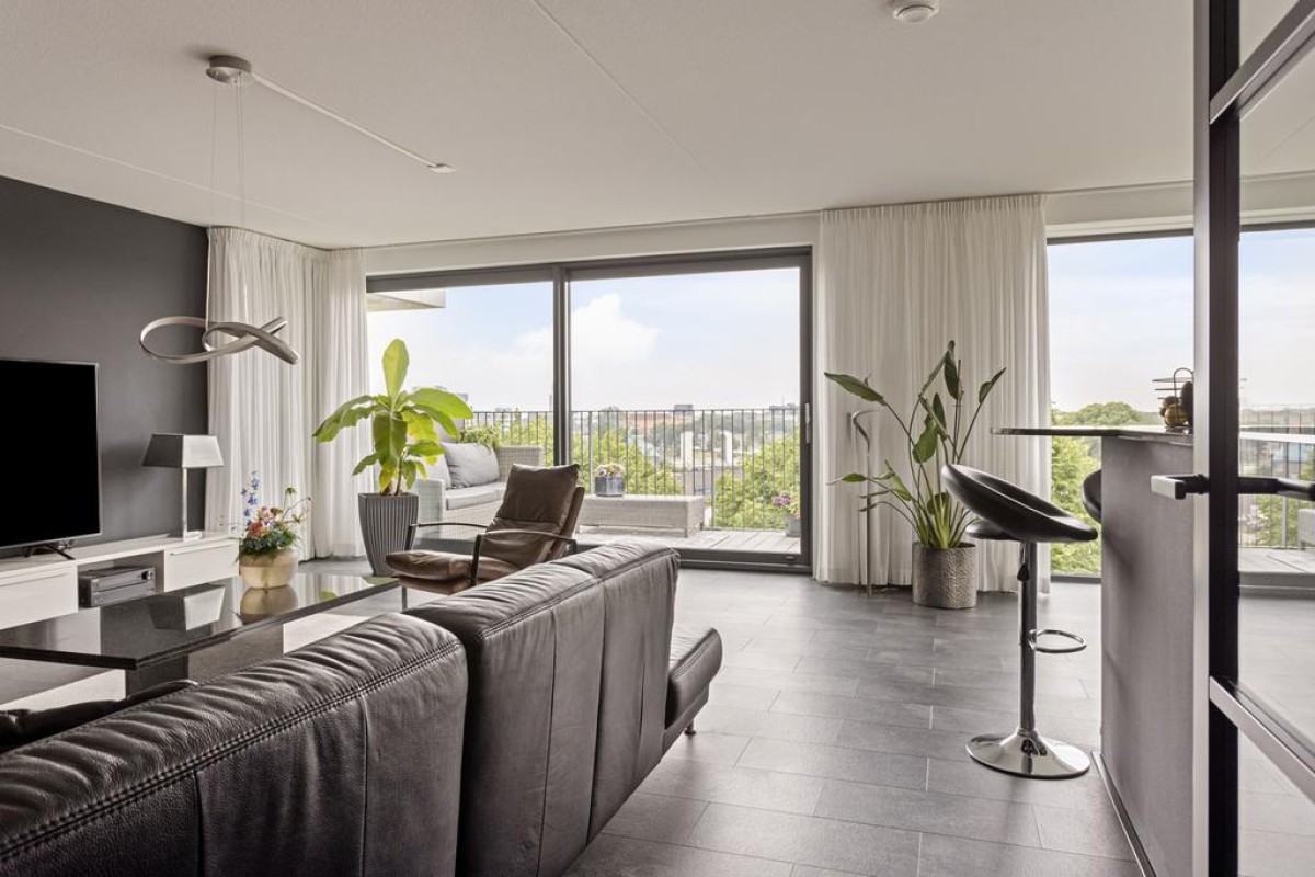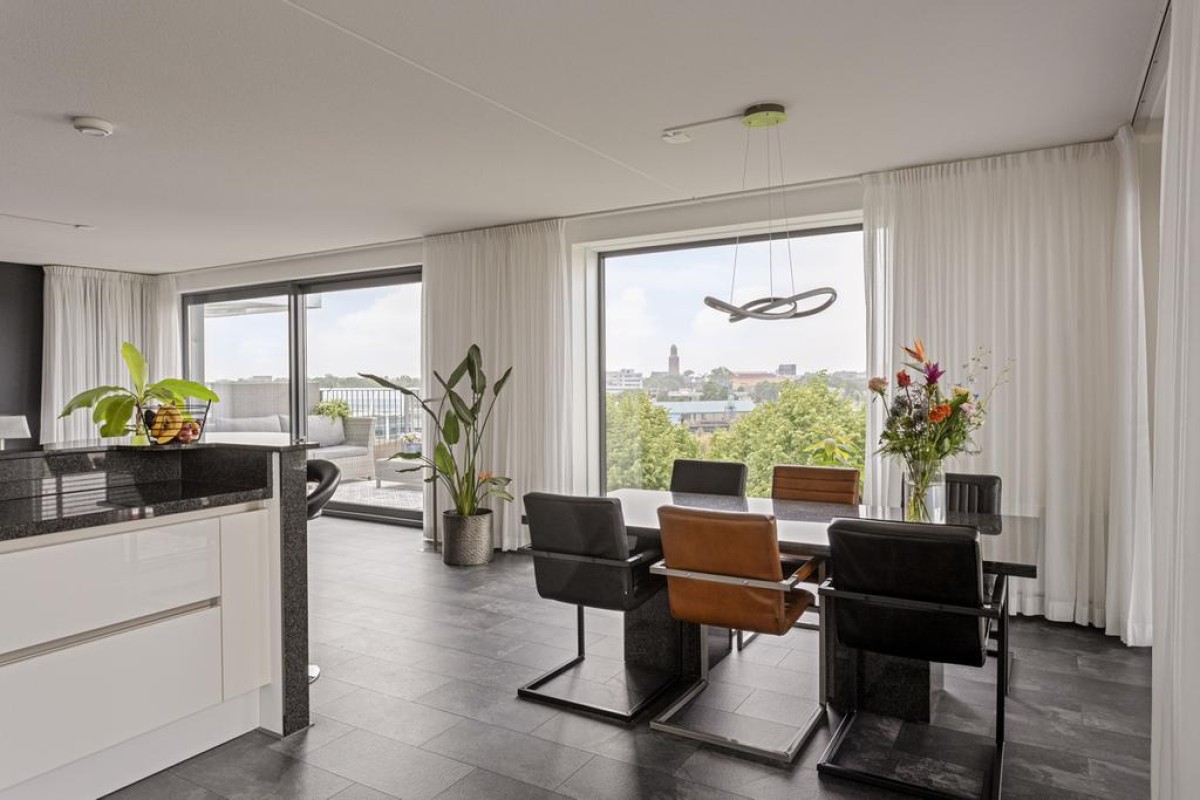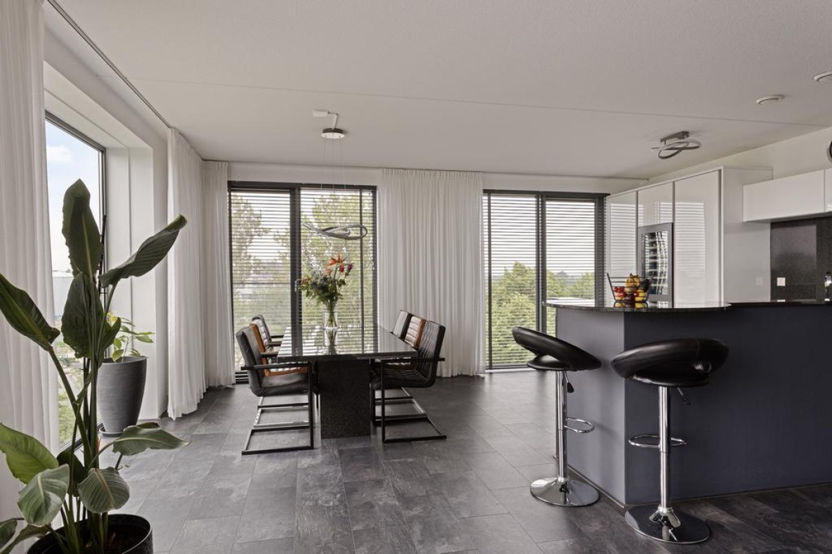 Vanuit dit hoekappartement op de 6de woonlaag heeft u, door de grote raampartijen die tot op vloerniveau doorlopen, prachtige vergezichten over de stad Zwolle en het Zwarte Water; werkelijk een indrukwekkend uitzicht