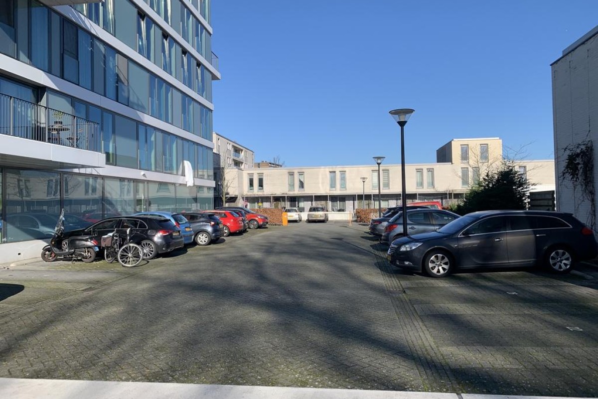 Op de begane grond bevindt zich de inpandige berging en op het door een slagboom afgesloten parkeerterrein bevindt zich een eigen parkeerplaats.