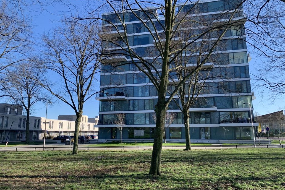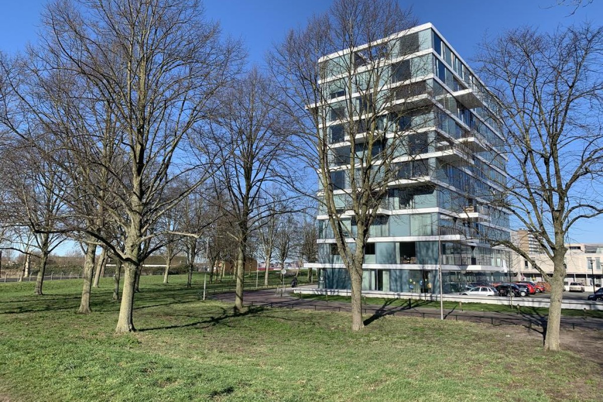 In het bijzondere appartementencomplex Stradivarius, op bijna de hoogste verdieping met een fantastisch uitzicht gelegen verrassend ruim 4-kamer hoekappartement met eigen parkeergelegenheid. Op de begane grond bevinden zich de berging, de ruime hoofdentree en het trappenhuis met lift.
