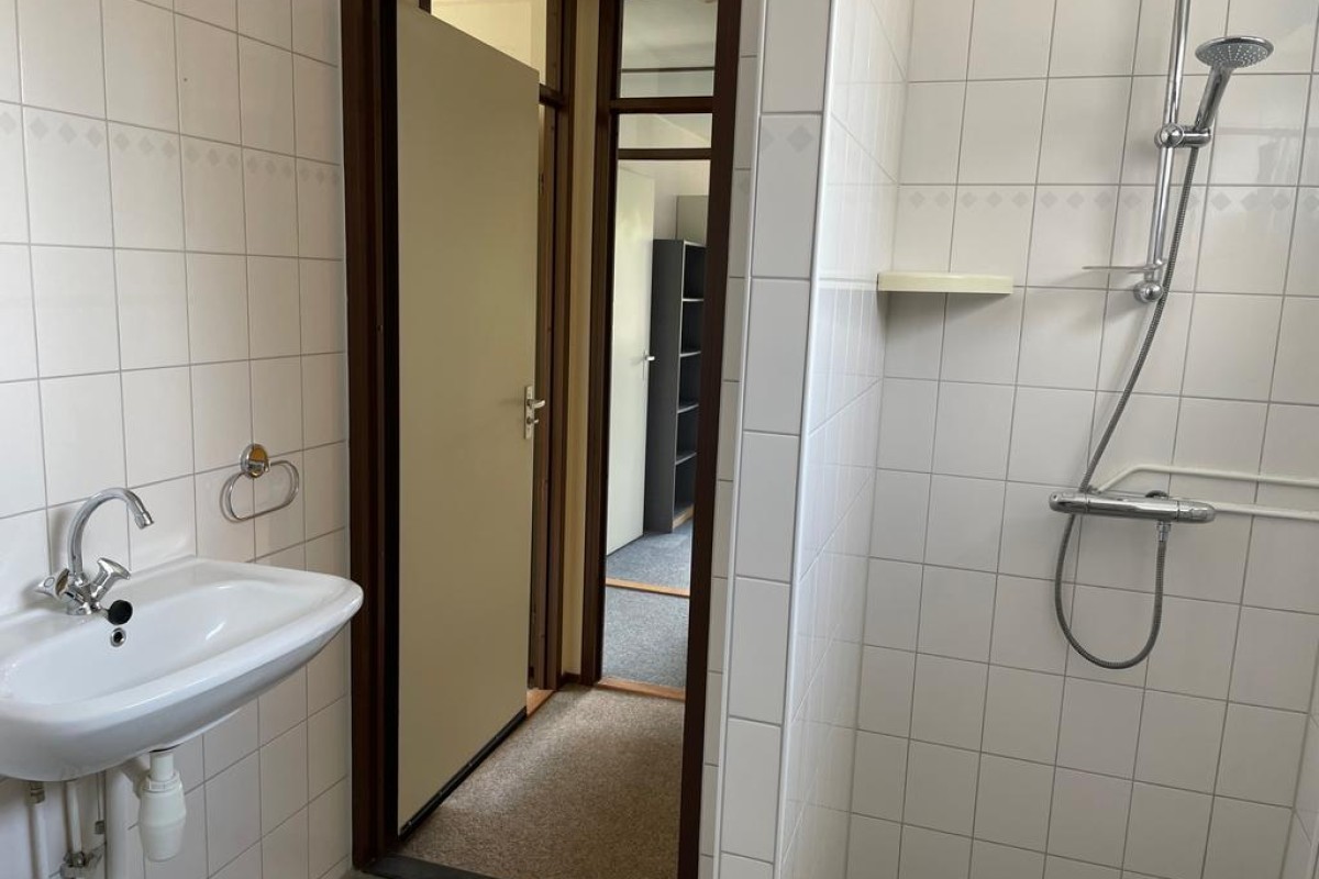 Lees verderDe badkamer is uitgerust met een douchehoek, aansluiting voor de wasmachine, 2e toilet en vaste wastafel.