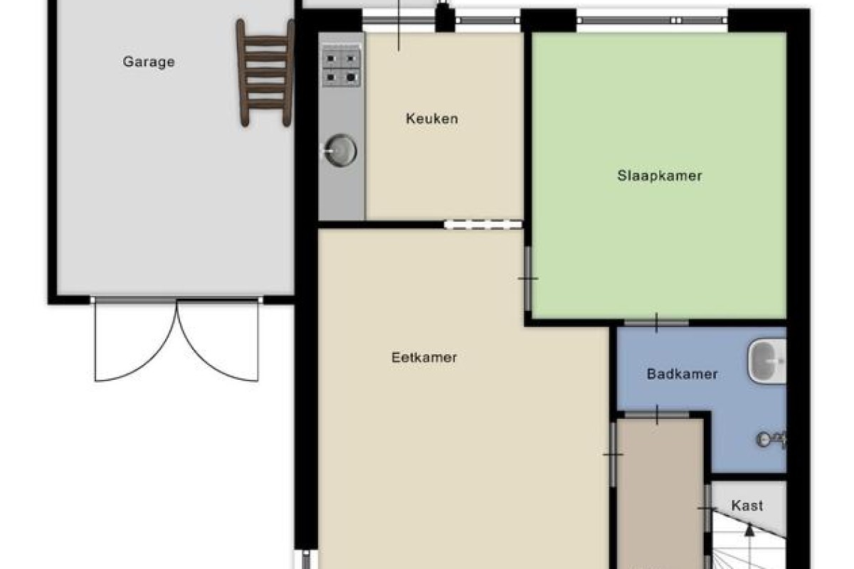 Lees verderAangrenzend bevindt zich de keuken in een rechte opstelling en voorzien van o.a. gaskookplaat, afzuigkap en spoelbak. bBadkamer met douche en wastafel en aansluitend de slaapkamer. Achter de keuken treft u de bijkeuken met de cv opstelling (intergas 2011) en aansluiting voor de wasmachine. Vanuit de bijkeuken is de garage met vliering bereikbaar
