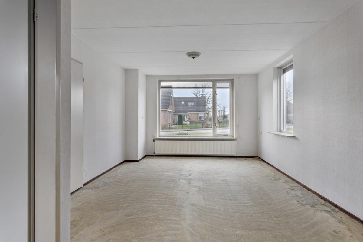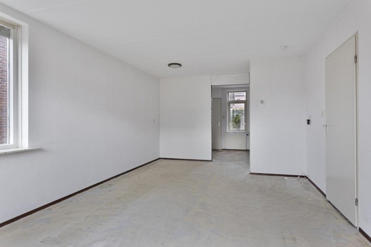 De woonkamer bevindt zich aan de voorzijde van de woning ca. 23 m2 . Door de grote ramen is dit een heerlijke lichte ruimte vanwaar je uitkijkt over de grote voortuin en de Kon. Julianalaan.