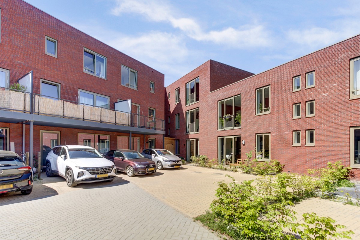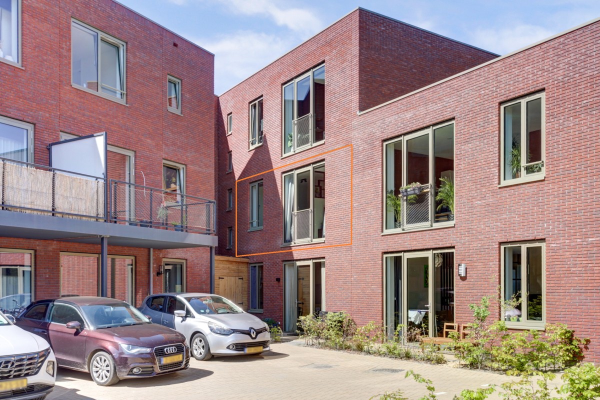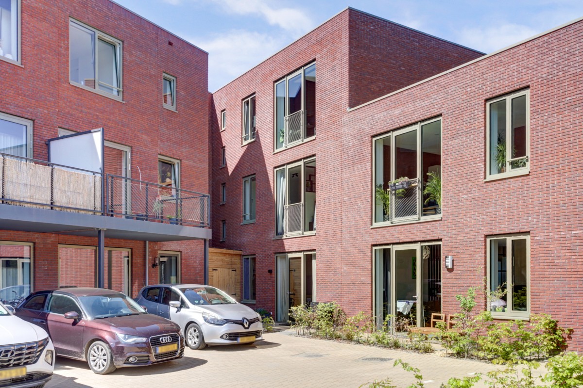 Het binnenterrein van het appartementencomplex biedt veel parkeergelegenheid met gras doorlatende bestrating. Een ruime algemene fietsenberging geeft voldoende stalling voor de fietsen.