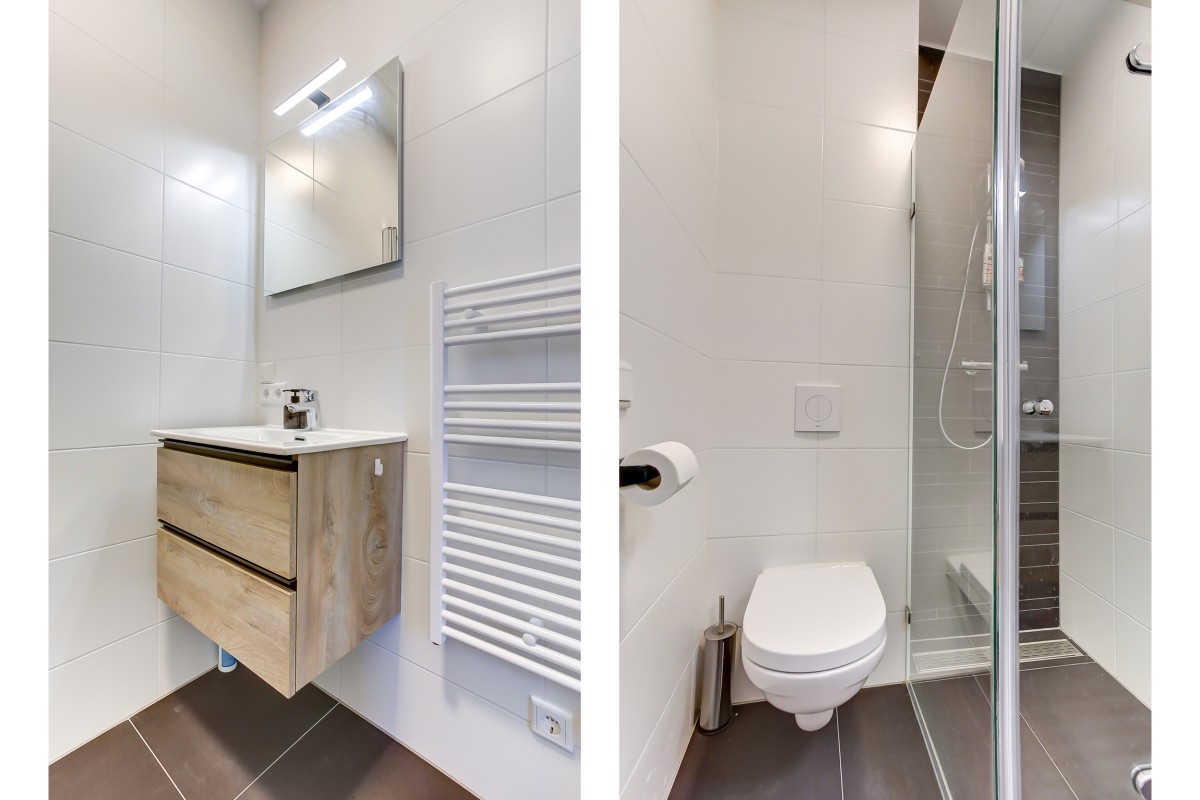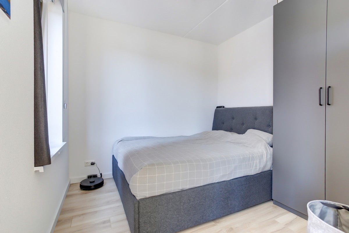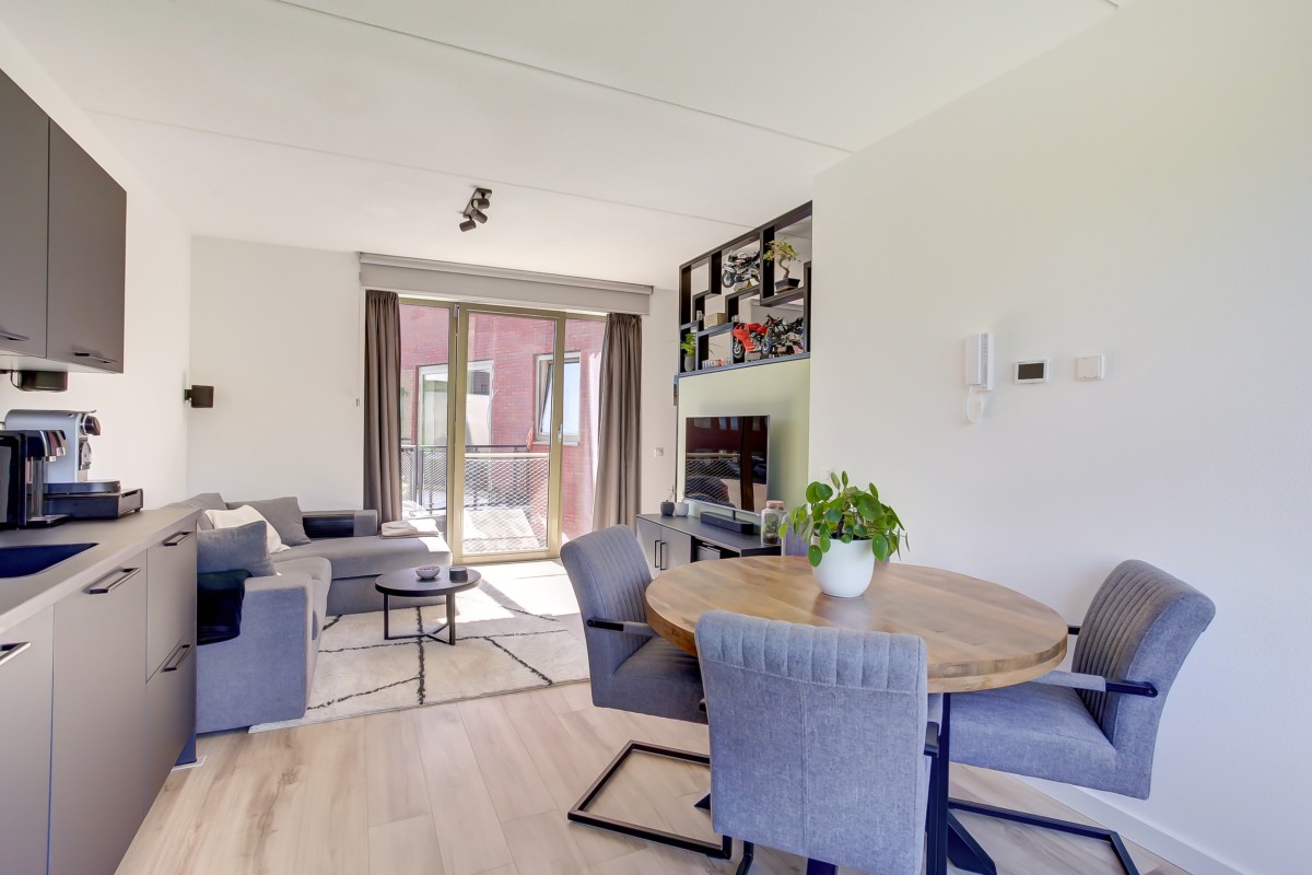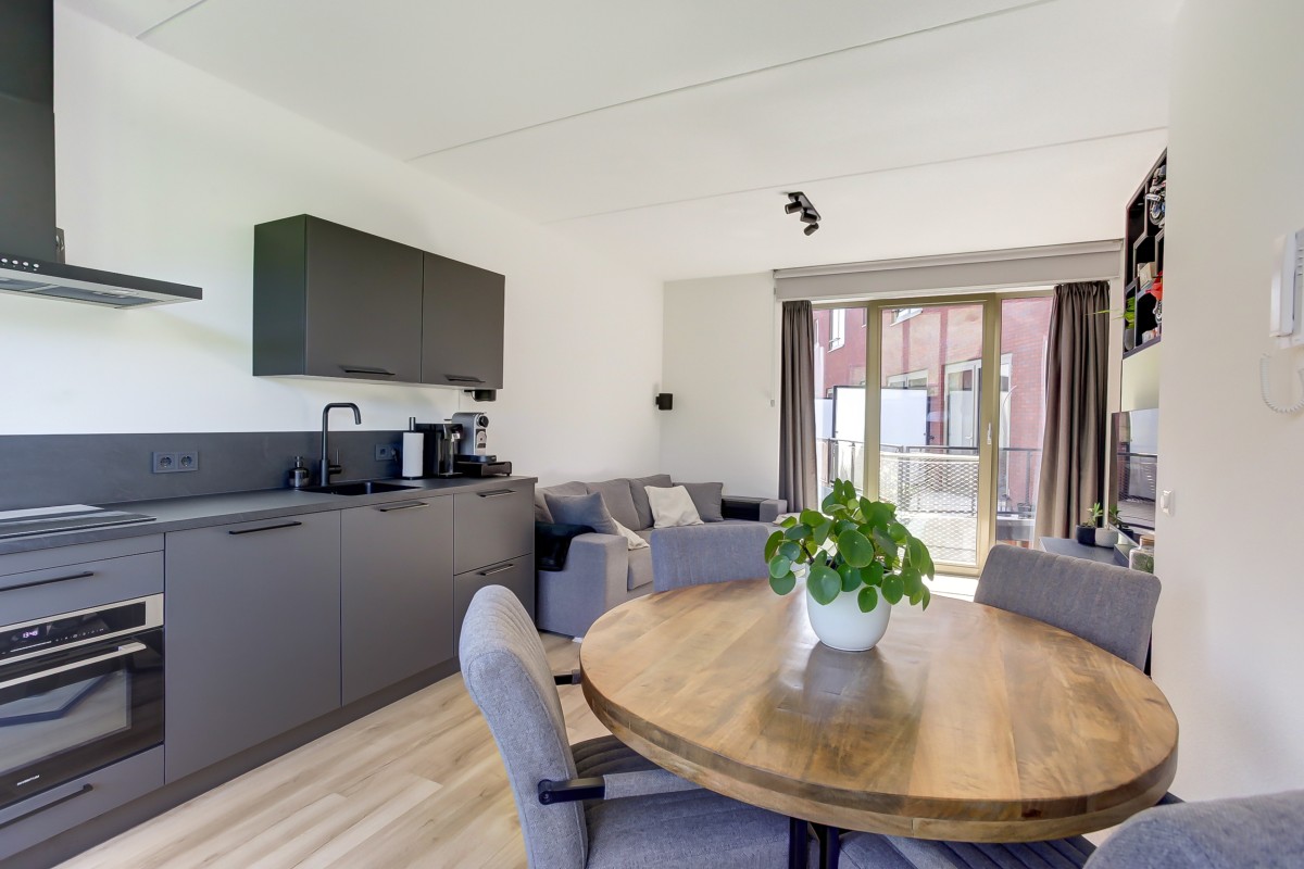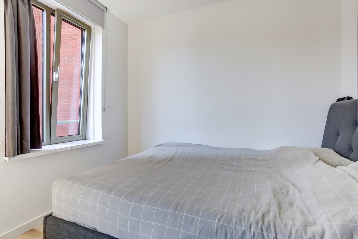 Lees verderEntree naar de hal met garderobe, uitgebreide meterkast en een ruime berging waar de warmtepomp, unit voor de vloerverwarming, omvormer voor de zonnepanelen, mv-unit en aansluiting voor de wasmachine gesitueerd zijn. De badkamer is voorzien van moderne betegeling, een hangcloset, inloopdouche met glazen wand en wastafel met meubel. De woonkamer betreft een mooie ruimte met Frans balkon op het zuiden en uitzicht over het binnenterrein alsmede groen voorziening aan de voorzijde van het complex. Deze ruimte is door een slimme wand gesplitst van het slaapgedeelte en de keuken. Het slaapgedeelte heeft eveneens een te openen raam met uitzicht op het binnenterrein. De luxe keuken is in moderne kleurstelling uitgevoerd en voorzien van veel kastruimte alsmede een ingebouwde combi-oven, inductiekookplaat met recirculatiekap, vaatwasser, koelkast en vrieskast. De studio is volledig voorzien van een comfortabele vloerverwarming en gecombineerd met een moderne laminaatvloer.
