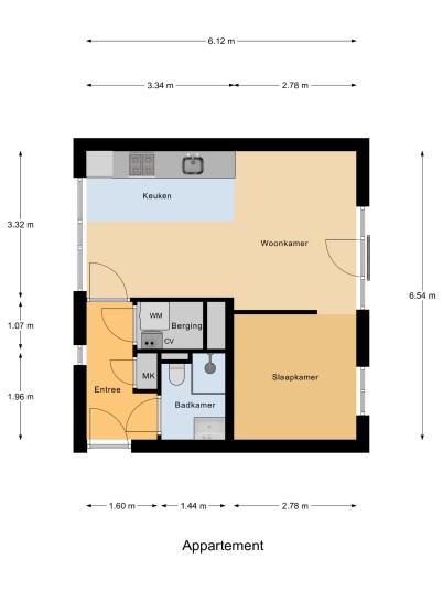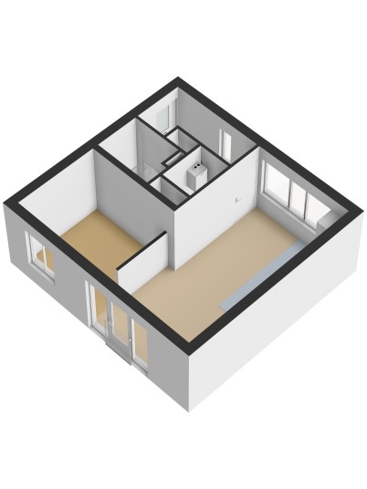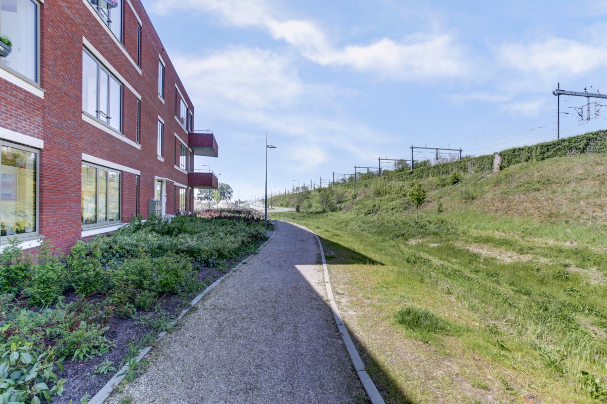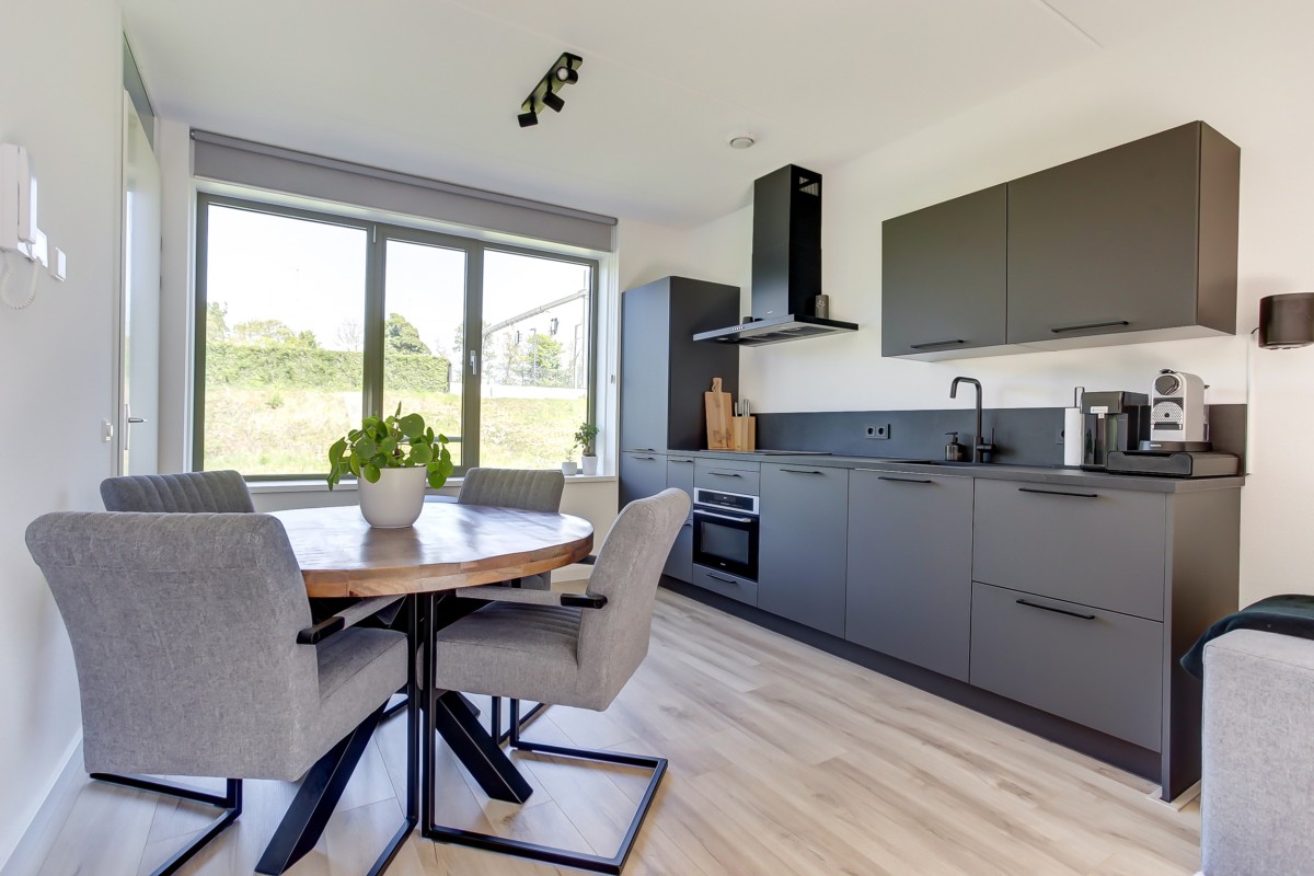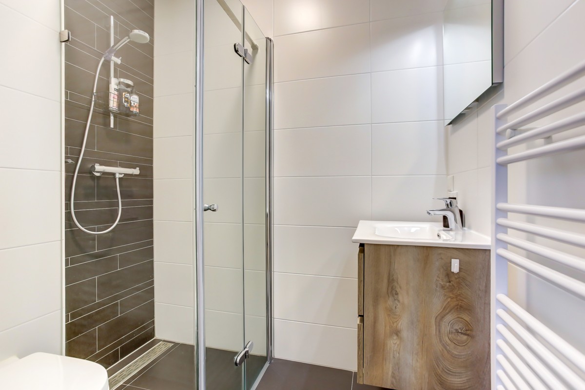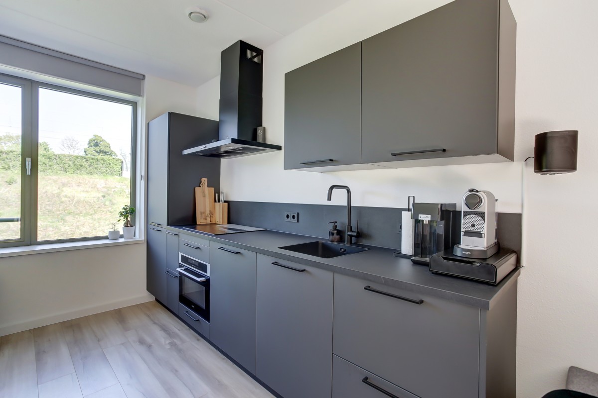 Lees verderEntree naar de hal met garderobe, uitgebreide meterkast en een ruime berging waar de warmtepomp, unit voor de vloerverwarming, omvormer voor de zonnepanelen, mv-unit en aansluiting voor de wasmachine gesitueerd zijn. De badkamer is voorzien van moderne betegeling, een hangcloset, inloopdouche met glazen wand en wastafel met meubel. De woonkamer betreft een mooie ruimte met Frans balkon op het zuiden en uitzicht over het binnenterrein alsmede groen voorziening aan de voorzijde van het complex. Deze ruimte is door een slimme wand gesplitst van het slaapgedeelte en de keuken. Het slaapgedeelte heeft eveneens een te openen raam met uitzicht op het binnenterrein. De luxe keuken is in moderne kleurstelling uitgevoerd en voorzien van veel kastruimte alsmede een ingebouwde combi-oven, inductiekookplaat met recirculatiekap, vaatwasser, koelkast en vrieskast. De studio is volledig voorzien van een comfortabele vloerverwarming en gecombineerd met een moderne laminaatvloer.