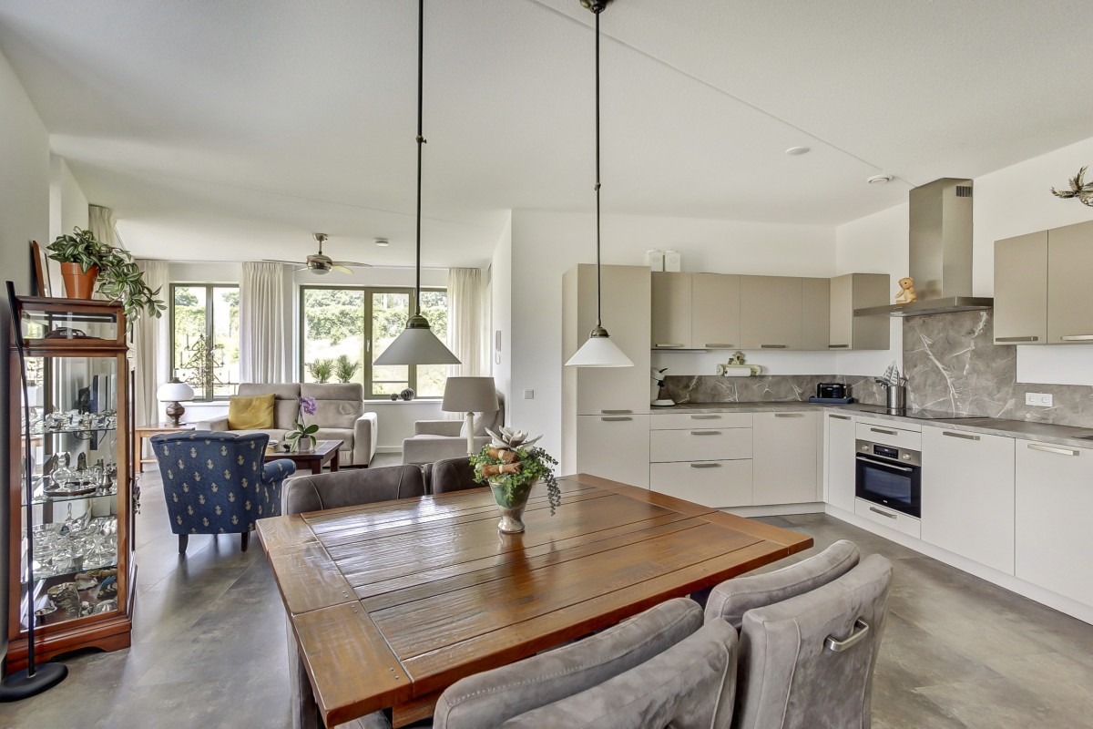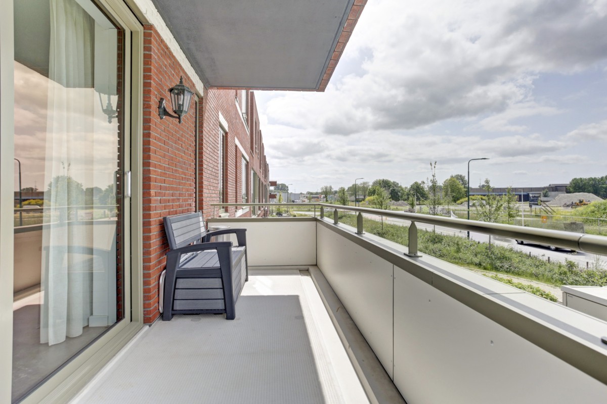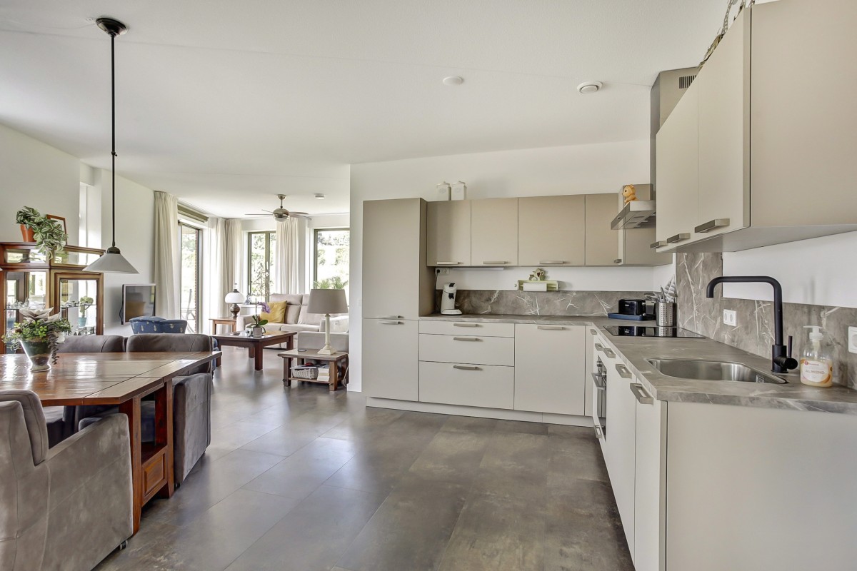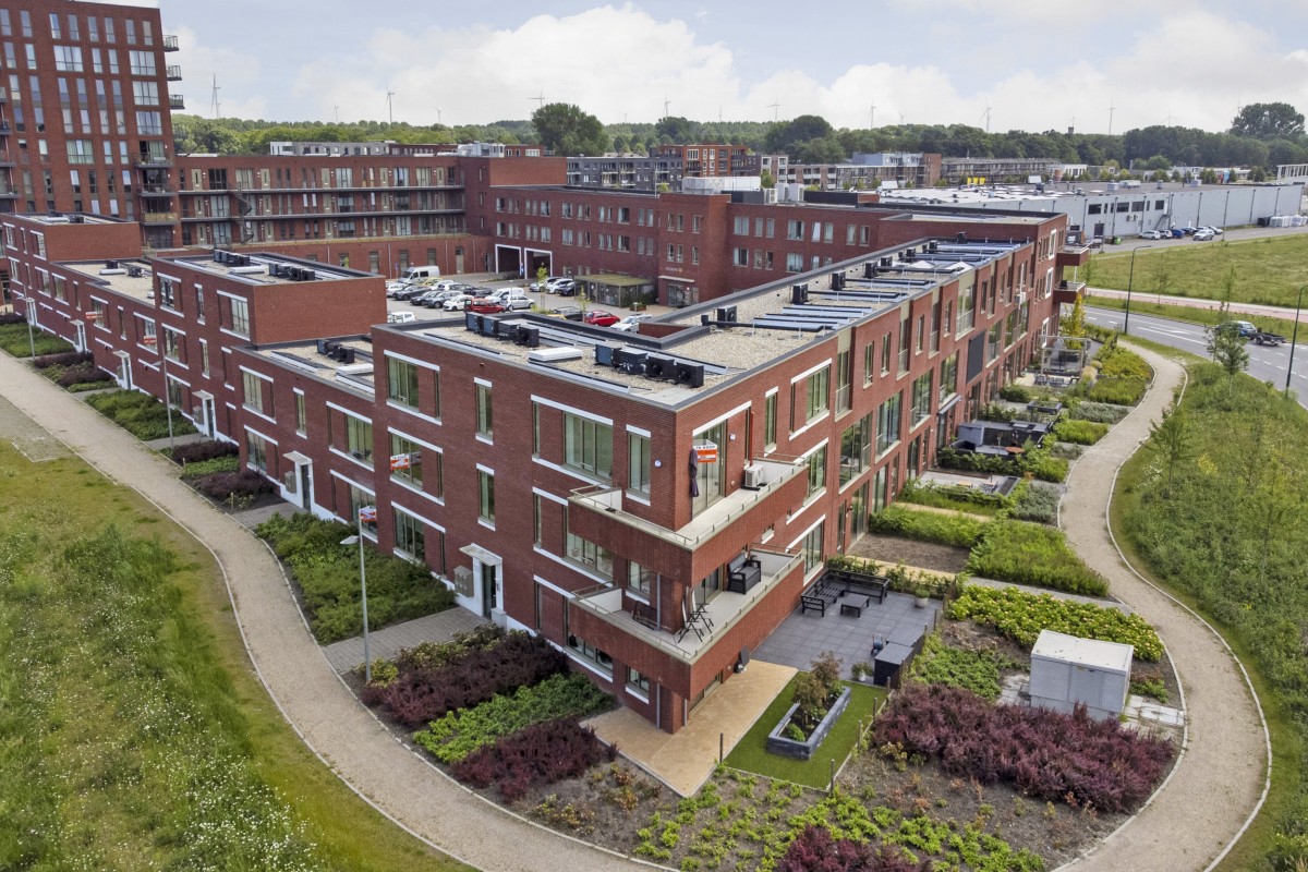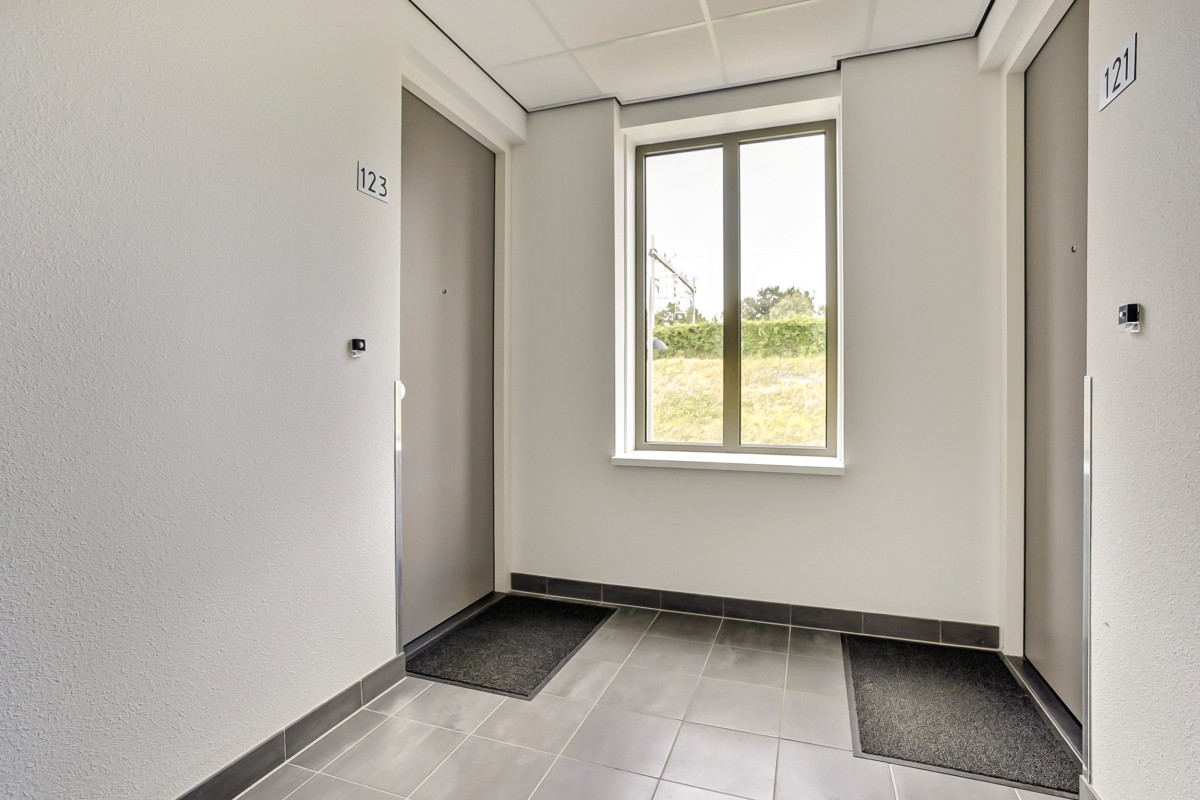 Appartement: entree naar de hal met garderobe, uitgebreide meterkast (3-fase) en een ruime berging waar de warmtepomp, unit voor de vloerverwarming, omvormer voor de 3 zonnepanelen, mv-unit en aansluiting voor de wasmachine en droger gesitueerd zijn. De badkamer is voorzien van moderne betegeling, een hangcloset, inloopdouche met glazen scherm, een hangkast en wastafel met meubel. De brede woonkamer betreft een mooie lichte ruimte met een schuifpui naar het balkon op het westen en vrij uitzicht over "Veldryck". De woonkamer heeft veel ramen en daarmee een heerlijke lichtinval. De moderne keuken is uitgevoerd met fronten in een taupe kleurstelling met marmerlook werkblad en is in een hoek opgesteld. De keuken biedt veel kastruimte en een groot werkblad. Tevens is de keuken voorzien van een ingebouwde koel-/vriescombinatie, vaatwasser, combimagnetron en 4-pits inductiekookplaat met rvs afzuigkap. Aangrenzend aan de woonkamer is de mooie grote slaapkamer gelegen met eveneens uitzicht op het westen.