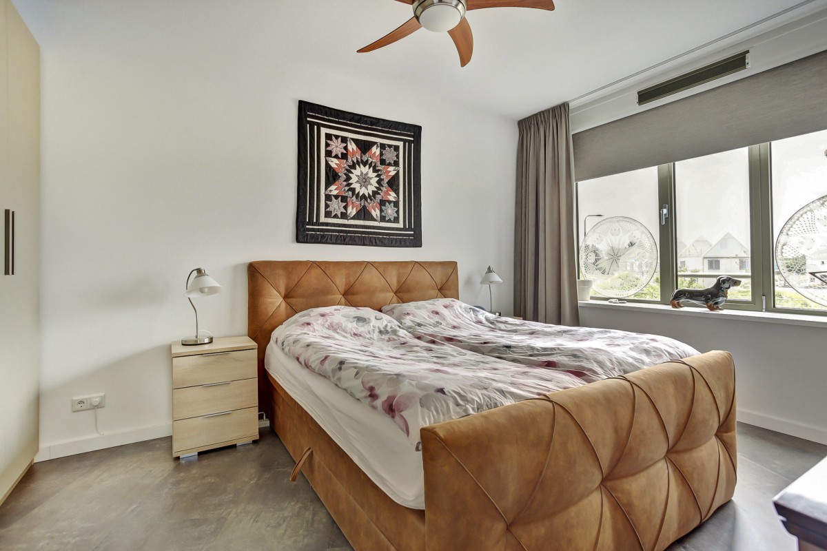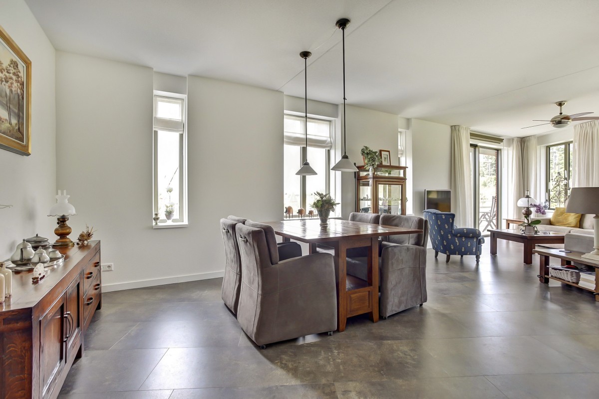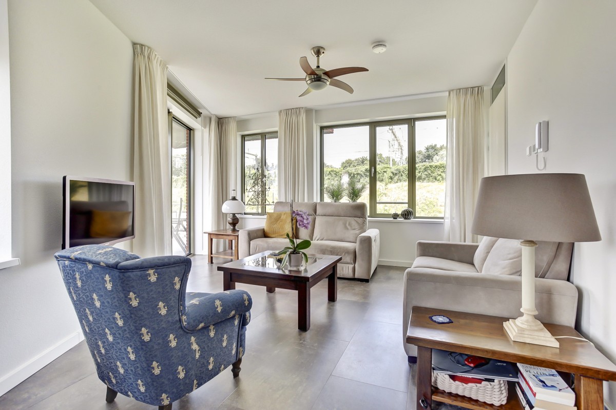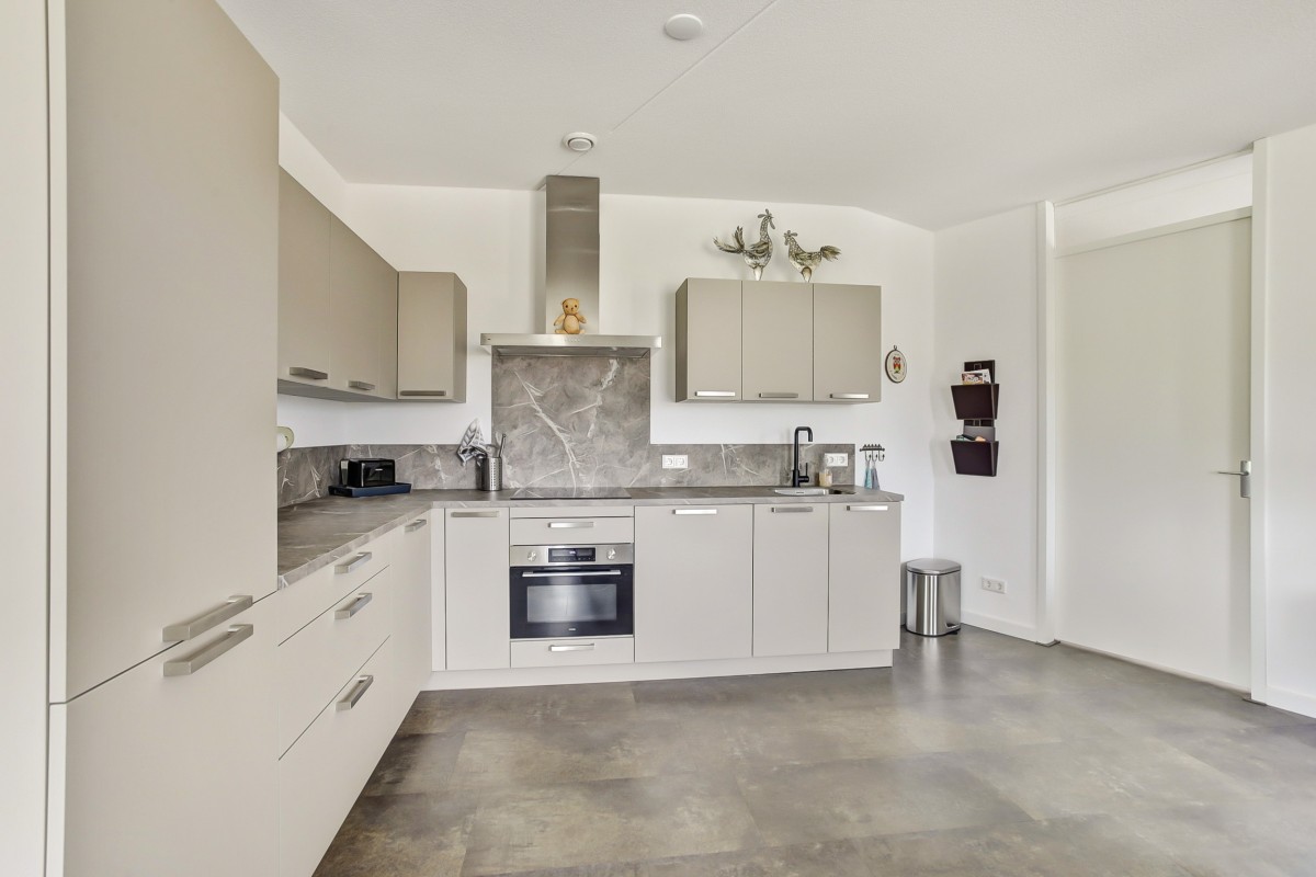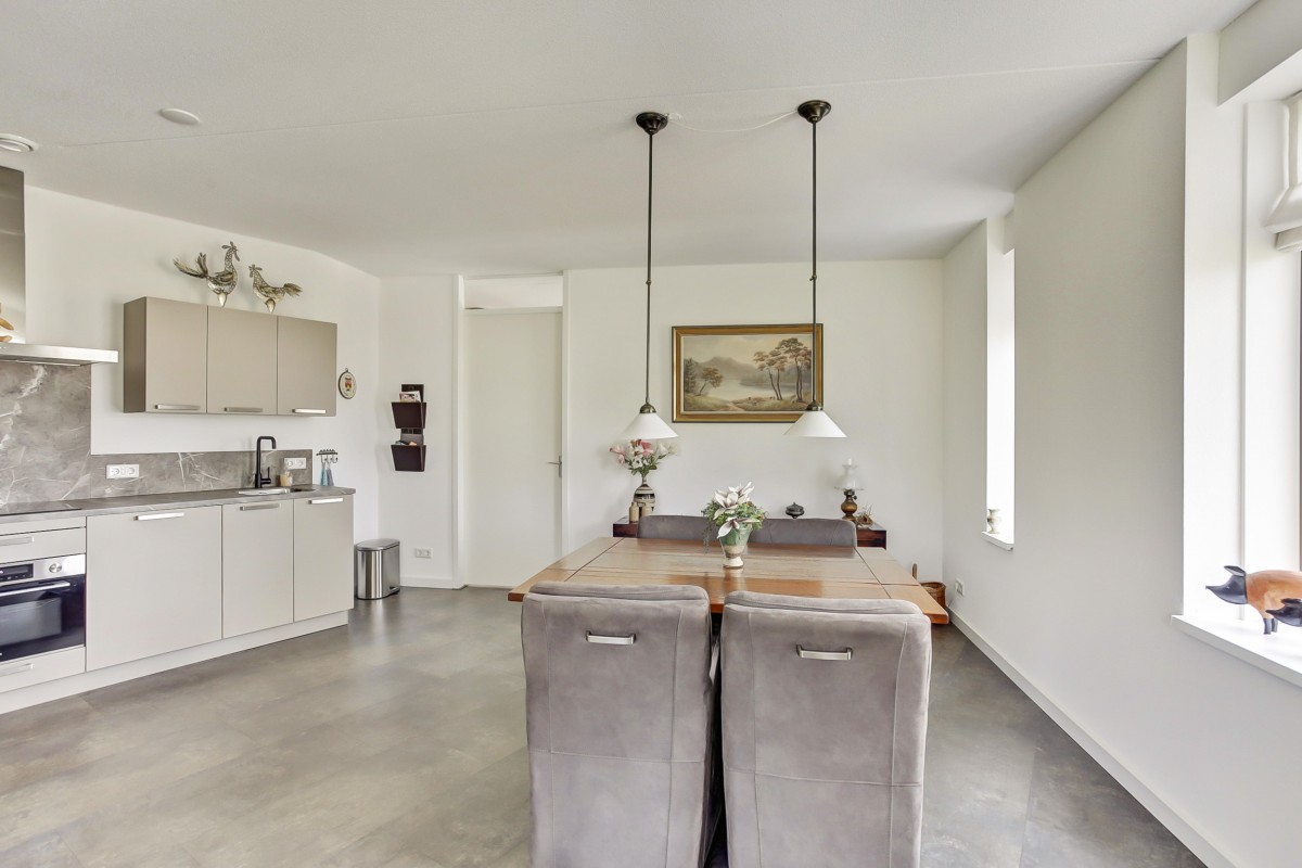 Appartement: entree naar de hal met garderobe, uitgebreide meterkast (3-fase) en een ruime berging waar de warmtepomp, unit voor de vloerverwarming, omvormer voor de 3 zonnepanelen, mv-unit en aansluiting voor de wasmachine en droger gesitueerd zijn. De badkamer is voorzien van moderne betegeling, een hangcloset, inloopdouche met glazen scherm, een hangkast en wastafel met meubel. De brede woonkamer betreft een mooie lichte ruimte met een schuifpui naar het balkon op het westen en vrij uitzicht over "Veldryck". De woonkamer heeft veel ramen en daarmee een heerlijke lichtinval. De moderne keuken is uitgevoerd met fronten in een taupe kleurstelling met marmerlook werkblad en is in een hoek opgesteld. De keuken biedt veel kastruimte en een groot werkblad. Tevens is de keuken voorzien van een ingebouwde koel-/vriescombinatie, vaatwasser, combimagnetron en 4-pits inductiekookplaat met rvs afzuigkap. Aangrenzend aan de woonkamer is de mooie grote slaapkamer gelegen met eveneens uitzicht op het westen.
